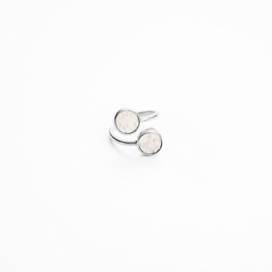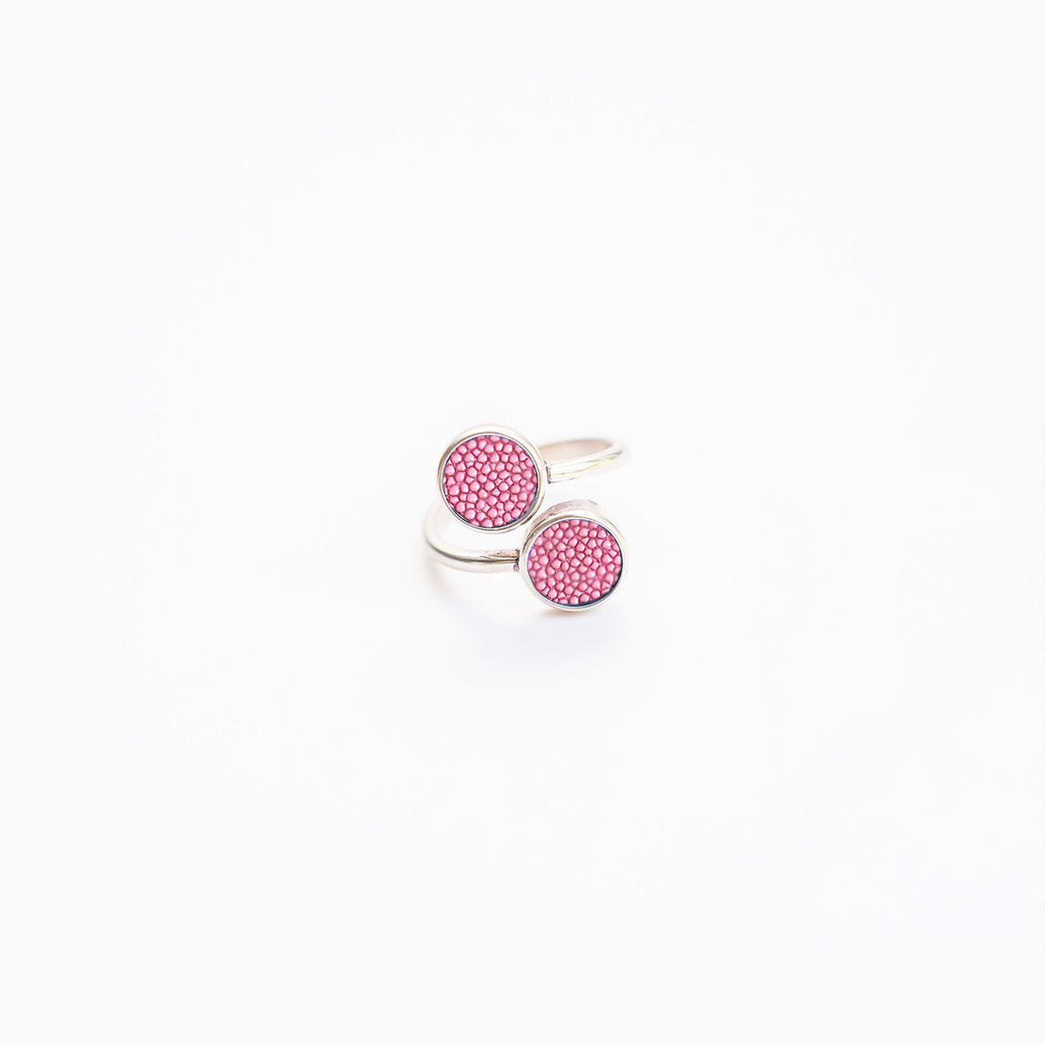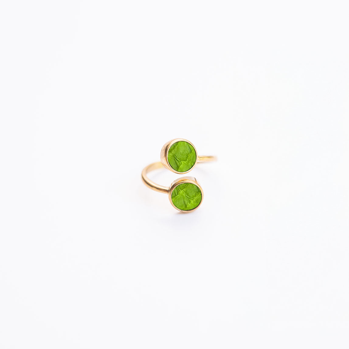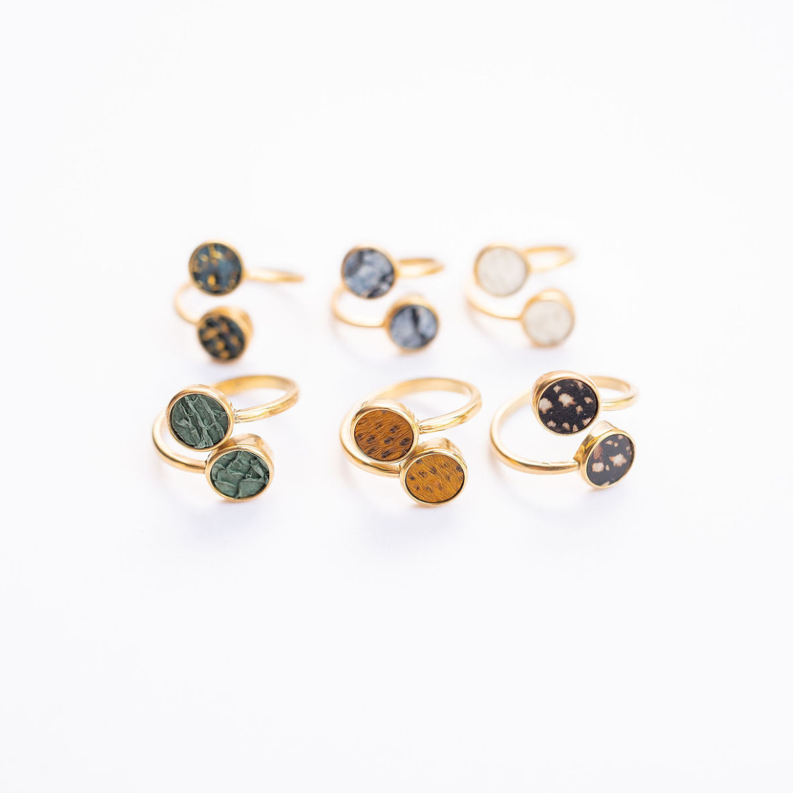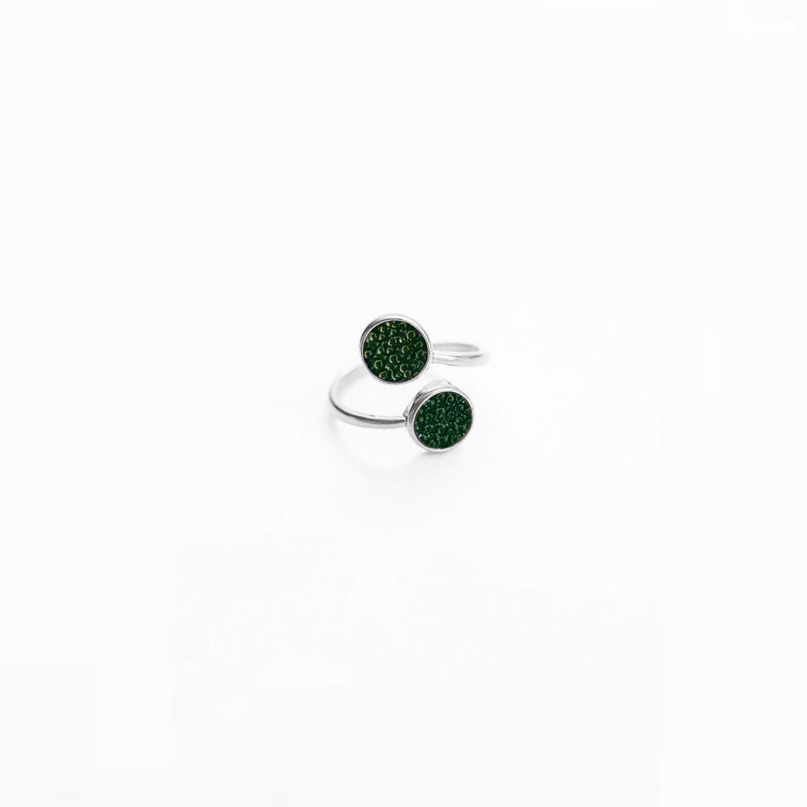 The Toogoodoo Cuff is a uniquely elegant piece featuring three centered bezels adorned with vibrant, colorful fish leather or fish eyes, infusing a hint of personal flair into your outfit.