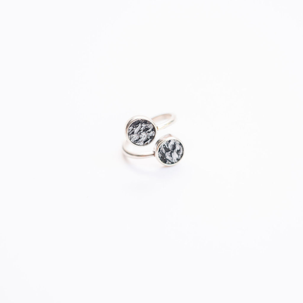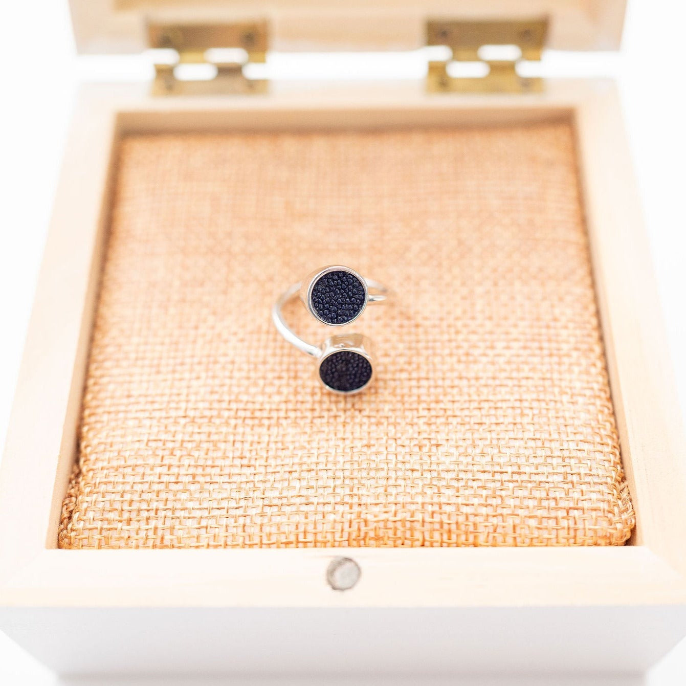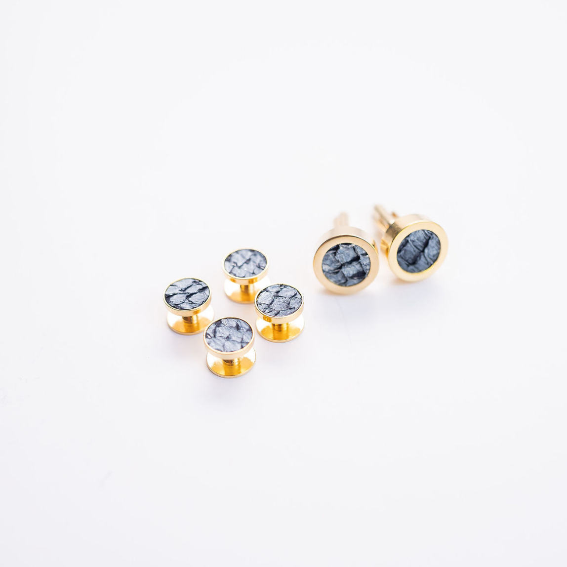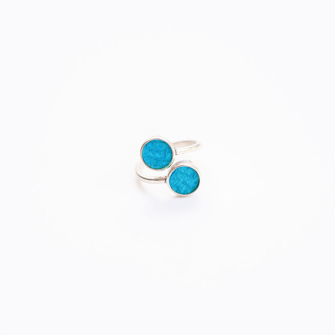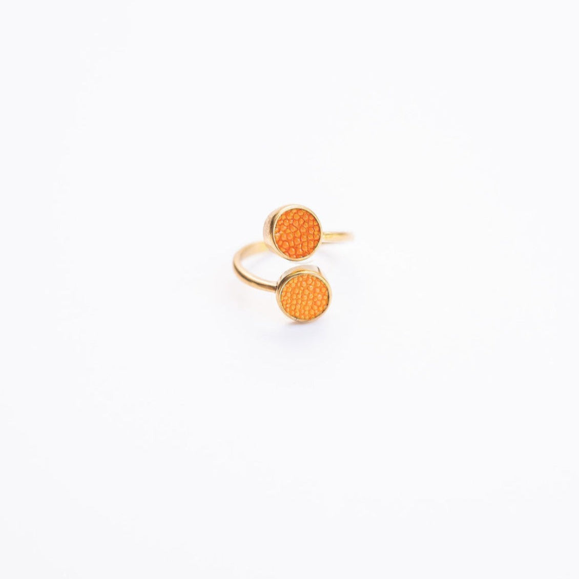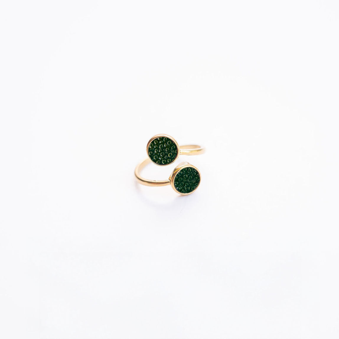 The Toogoodoo Cuff is a uniquely elegant piece featuring three centered bezels adorned with vibrant, colorful fish leather or fish eyes, infusing a hint of personal flair into your outfit.
