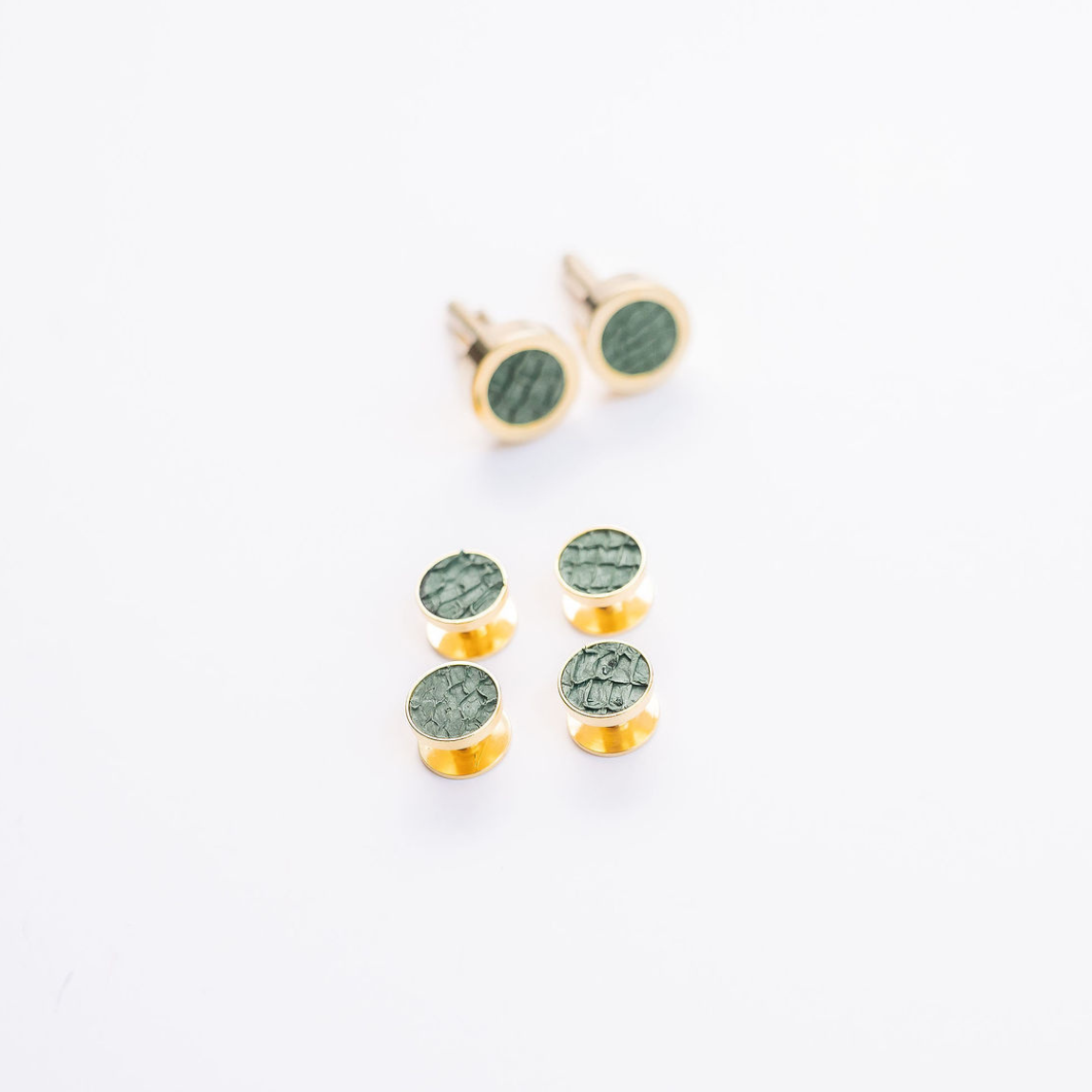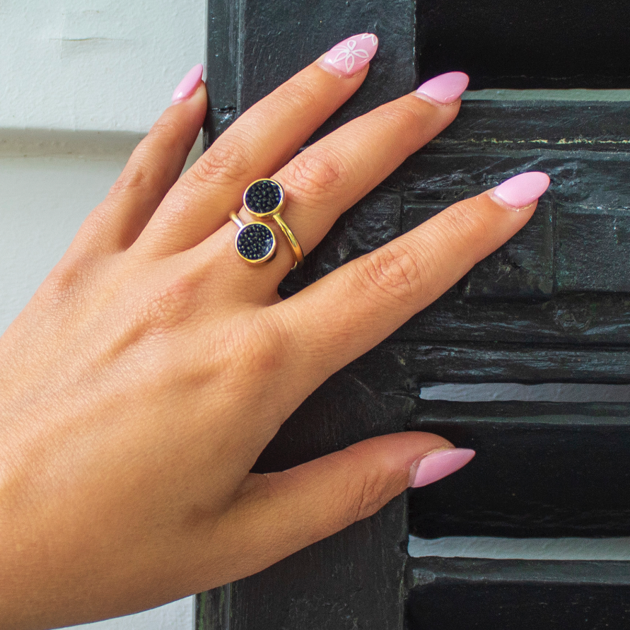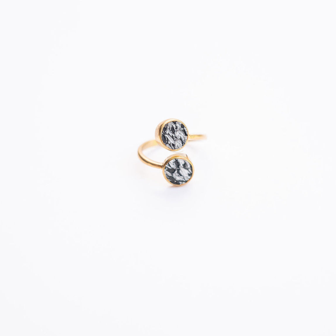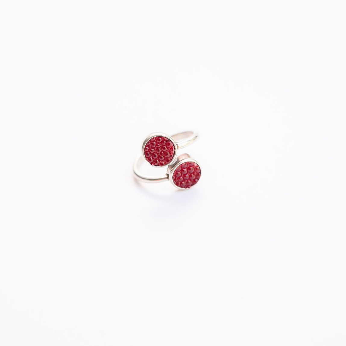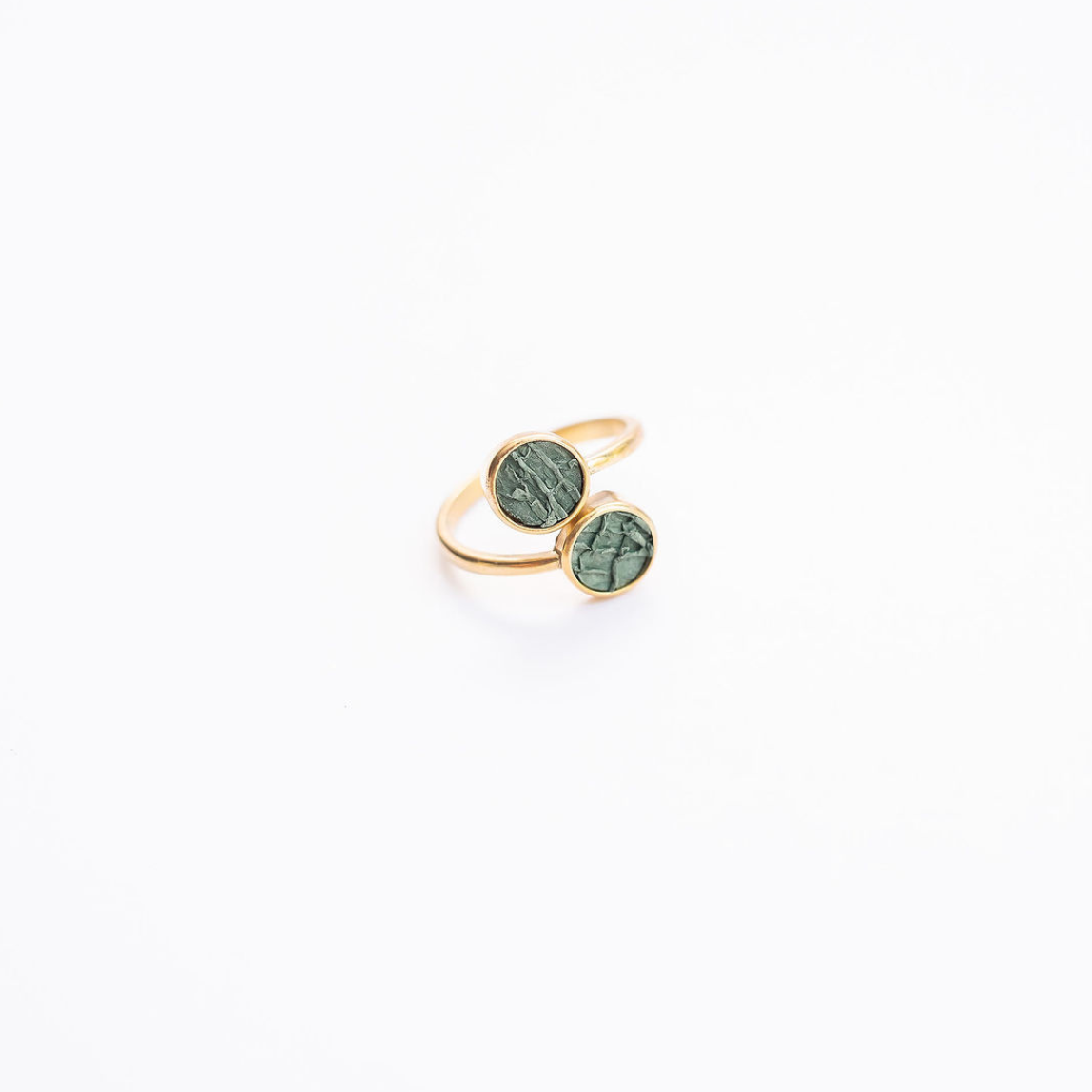 The Toogoodoo Cuff is a uniquely elegant piece featuring three centered bezels adorned with vibrant, colorful fish leather or fish eyes, infusing a hint of personal flair into your outfit.