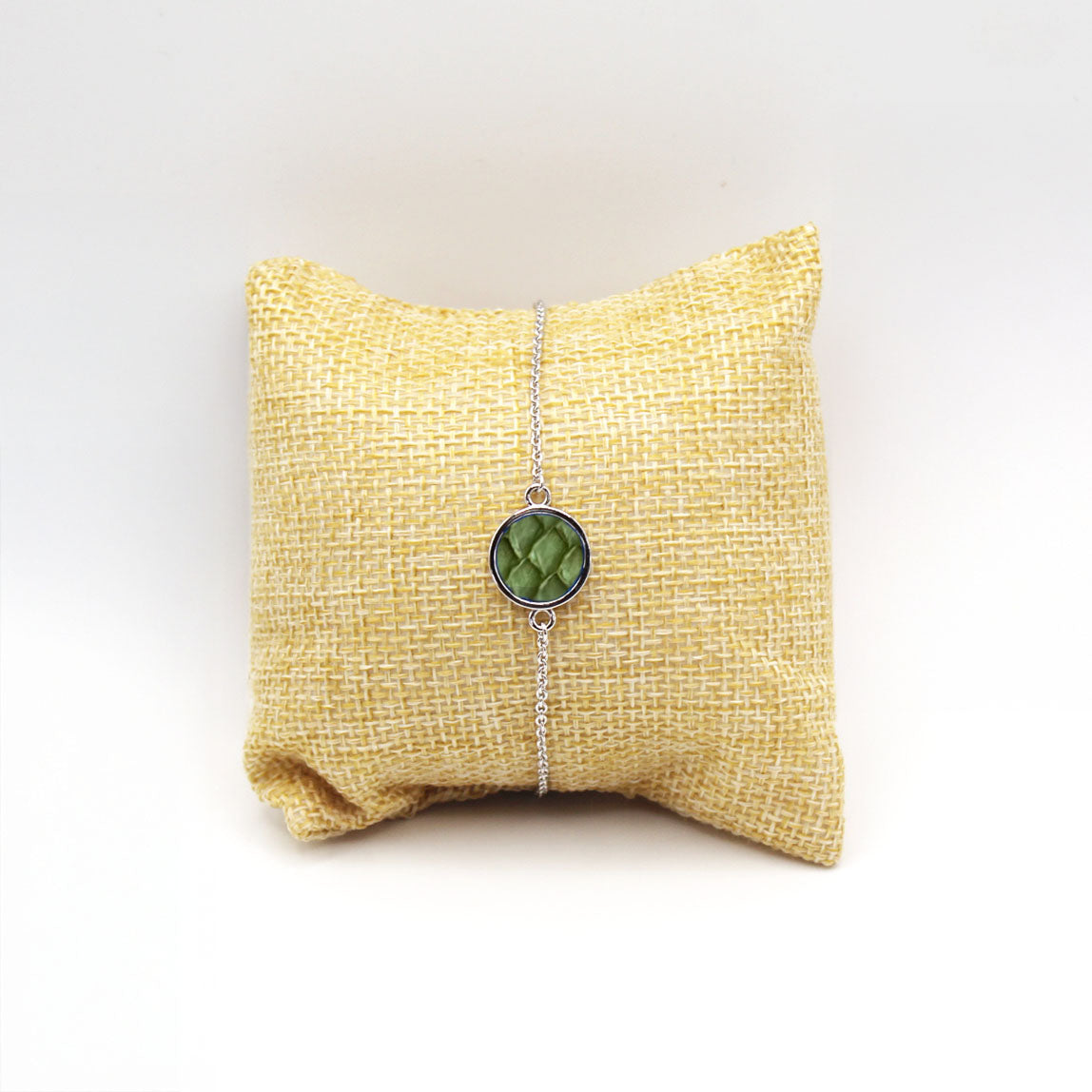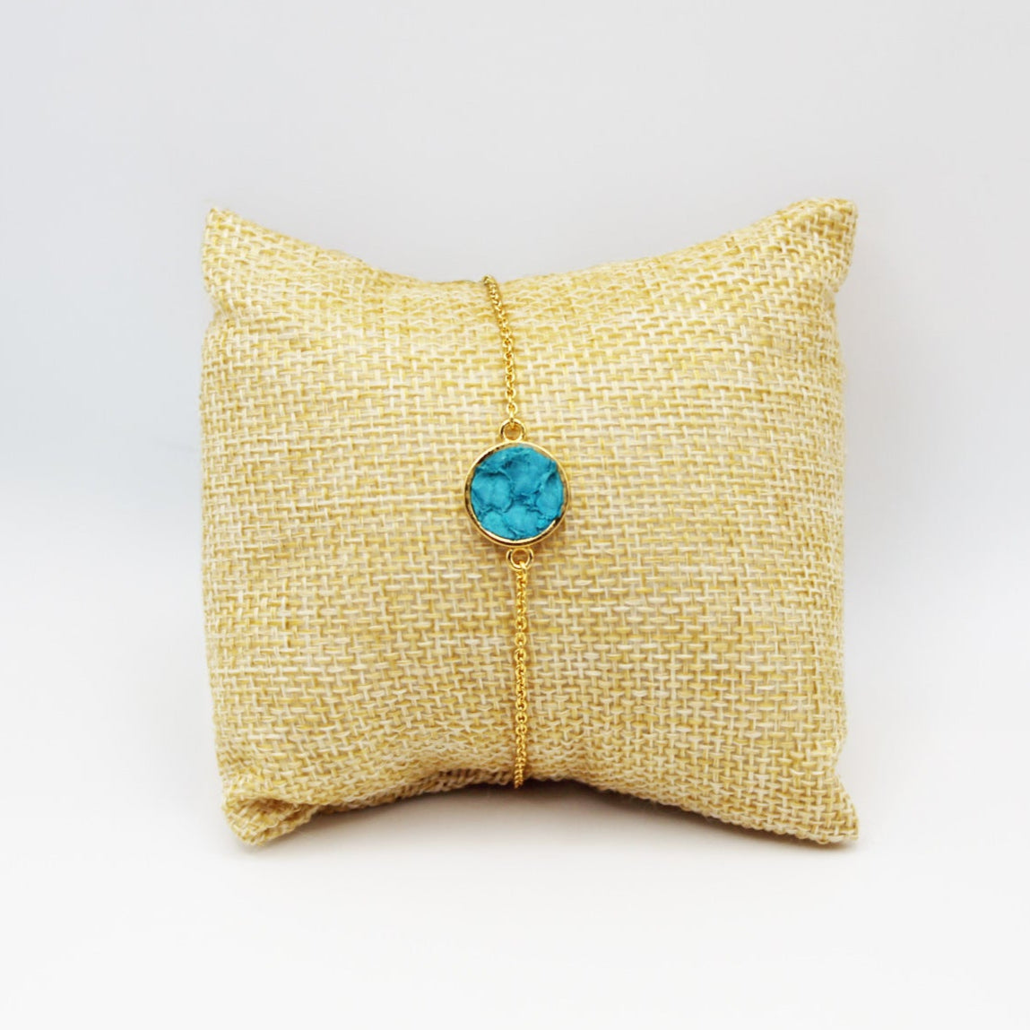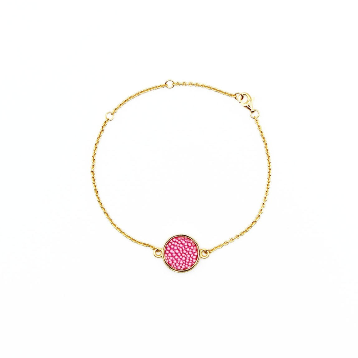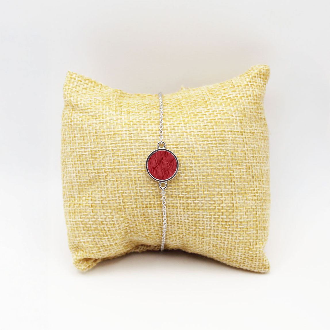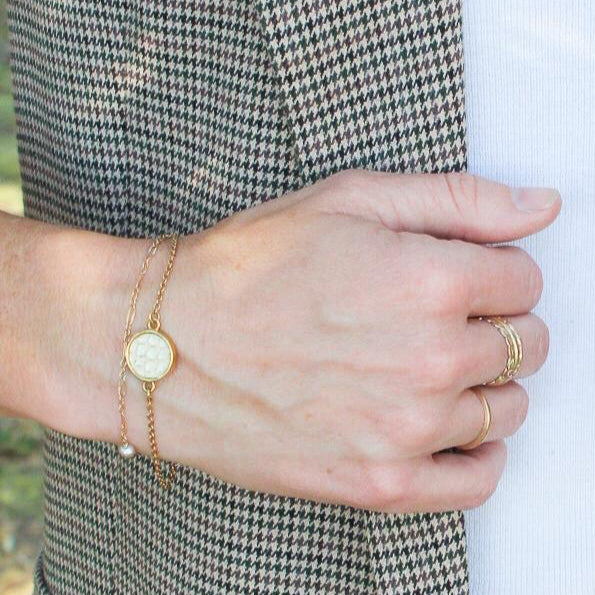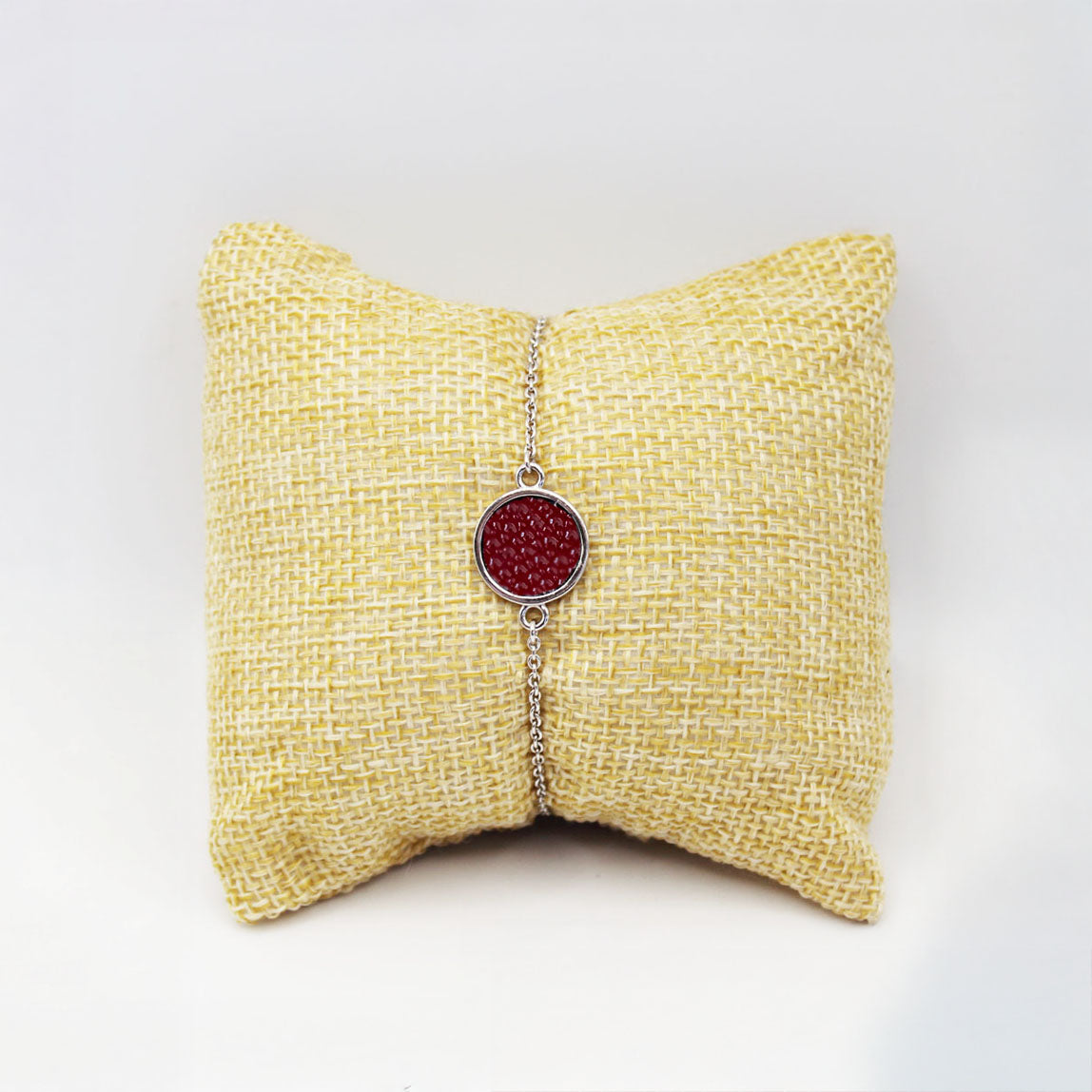 Experience the exquisite elegance of the Cooper Bracelet. Crafted with a sterling silver or 18k gold filled chain and adorned with a round leather mark filled with luxurious stingray or fish skin. This adjustable 6-8 inch bracelet is the perfect accessory for any occasion. Elevate your style with the Cooper Bracelet today.