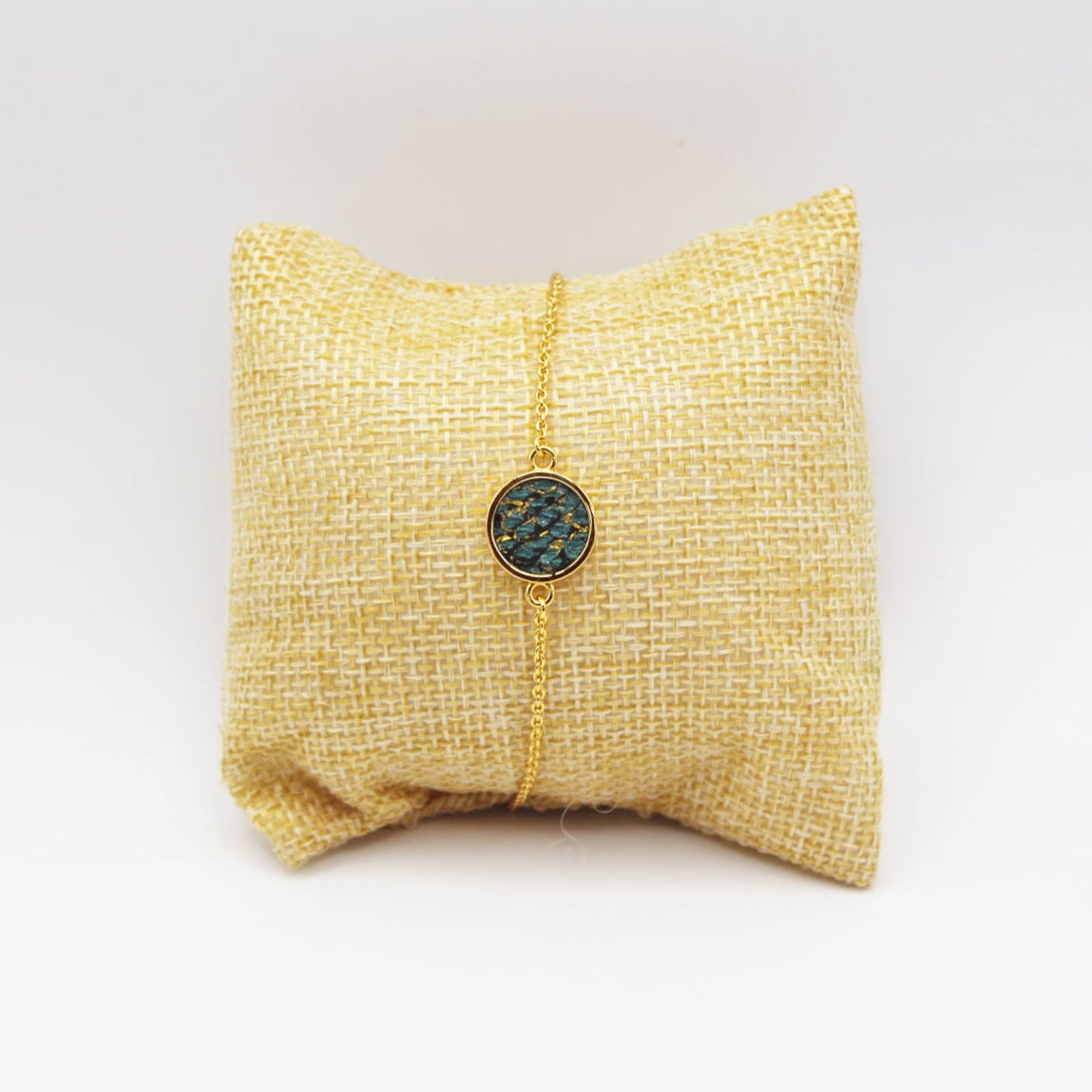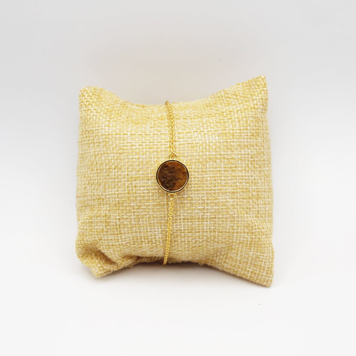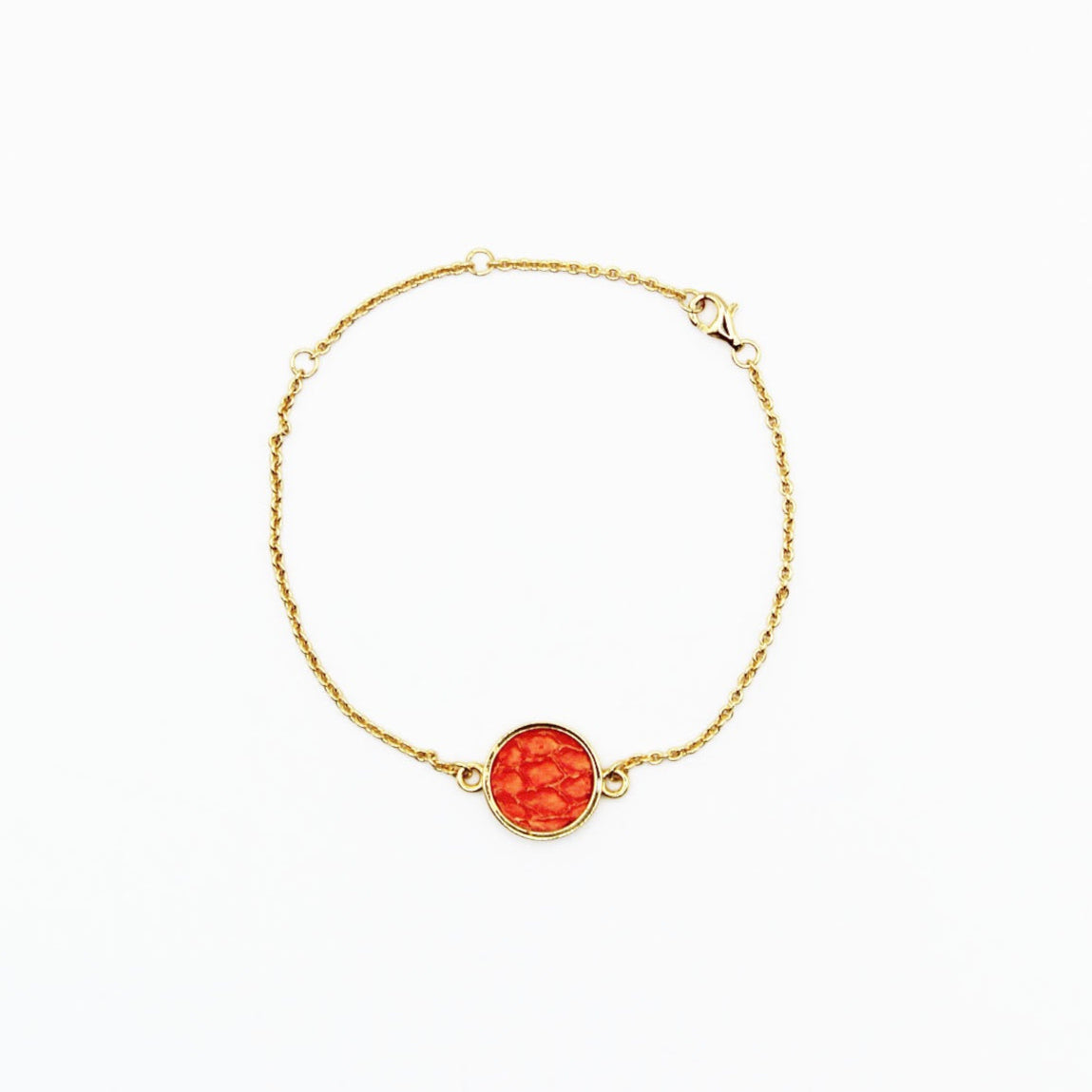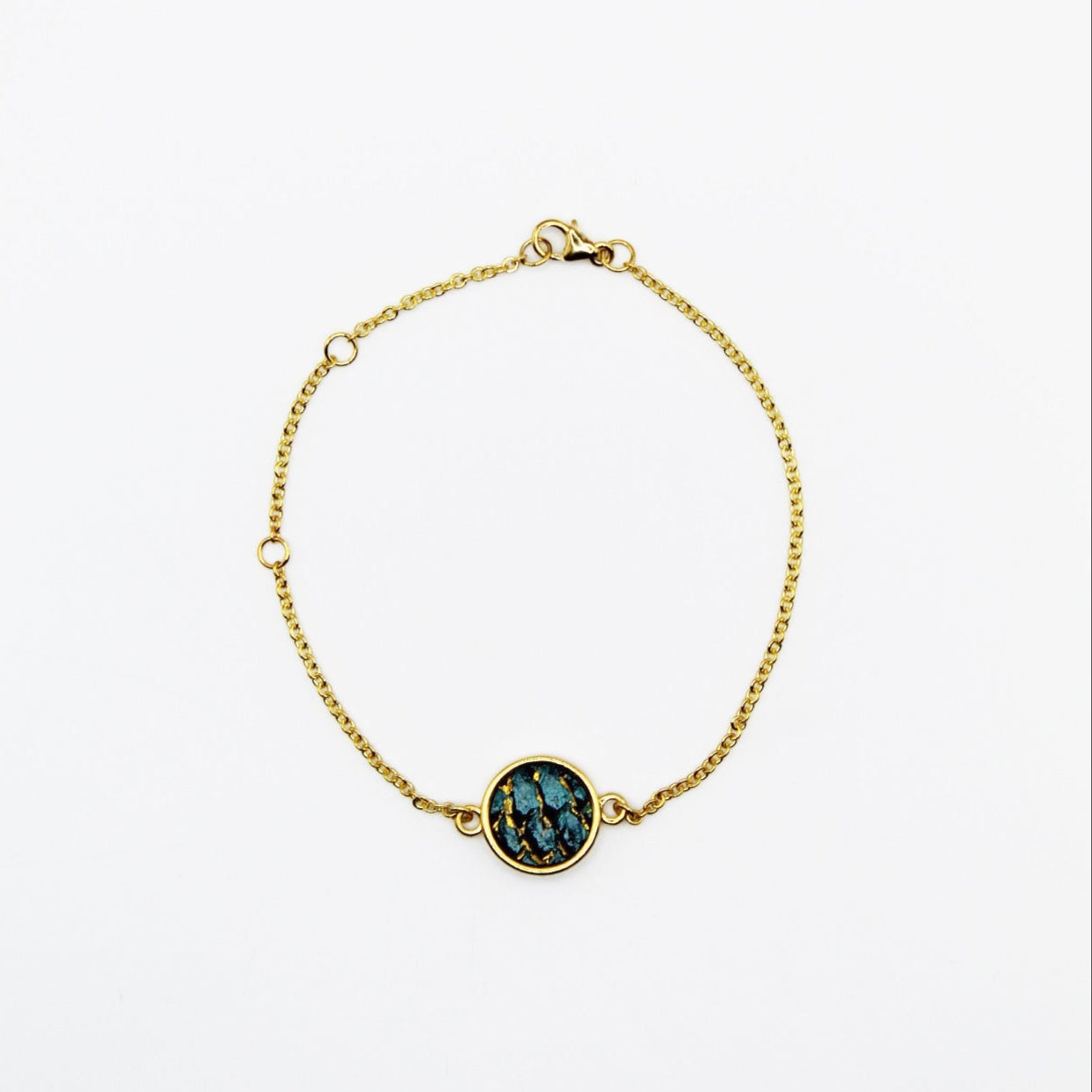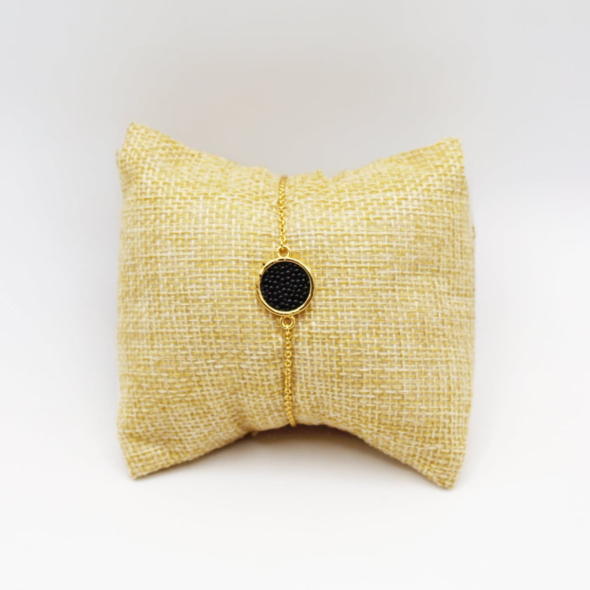 Experience the exquisite elegance of the Cooper Bracelet. Crafted with a sterling silver or 18k gold filled chain and adorned with a round leather mark filled with luxurious stingray or fish skin. This adjustable 6-8 inch bracelet is the perfect accessory for any occasion. Elevate your style with the Cooper Bracelet today.