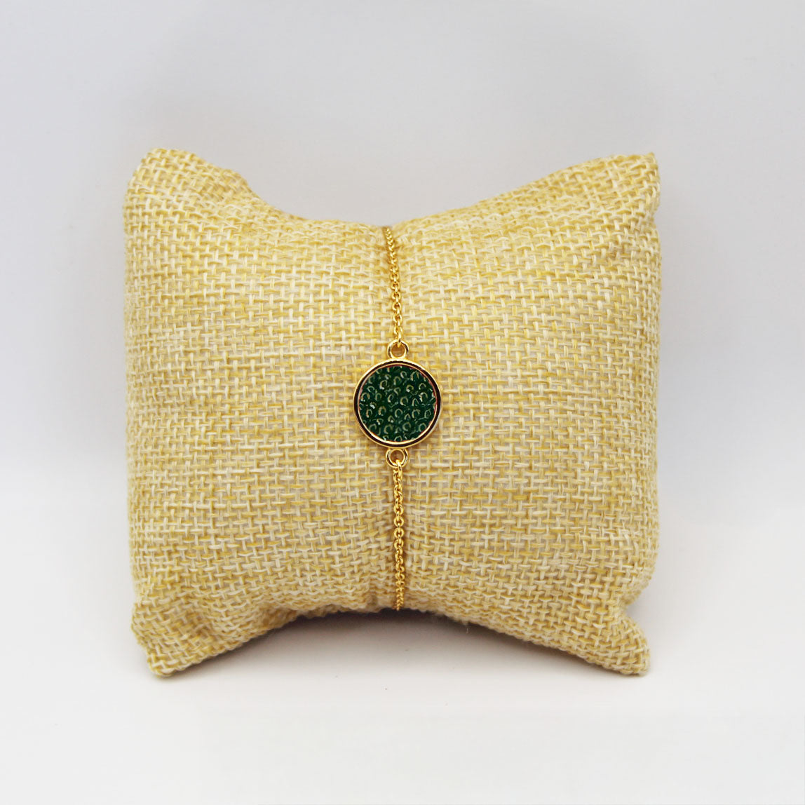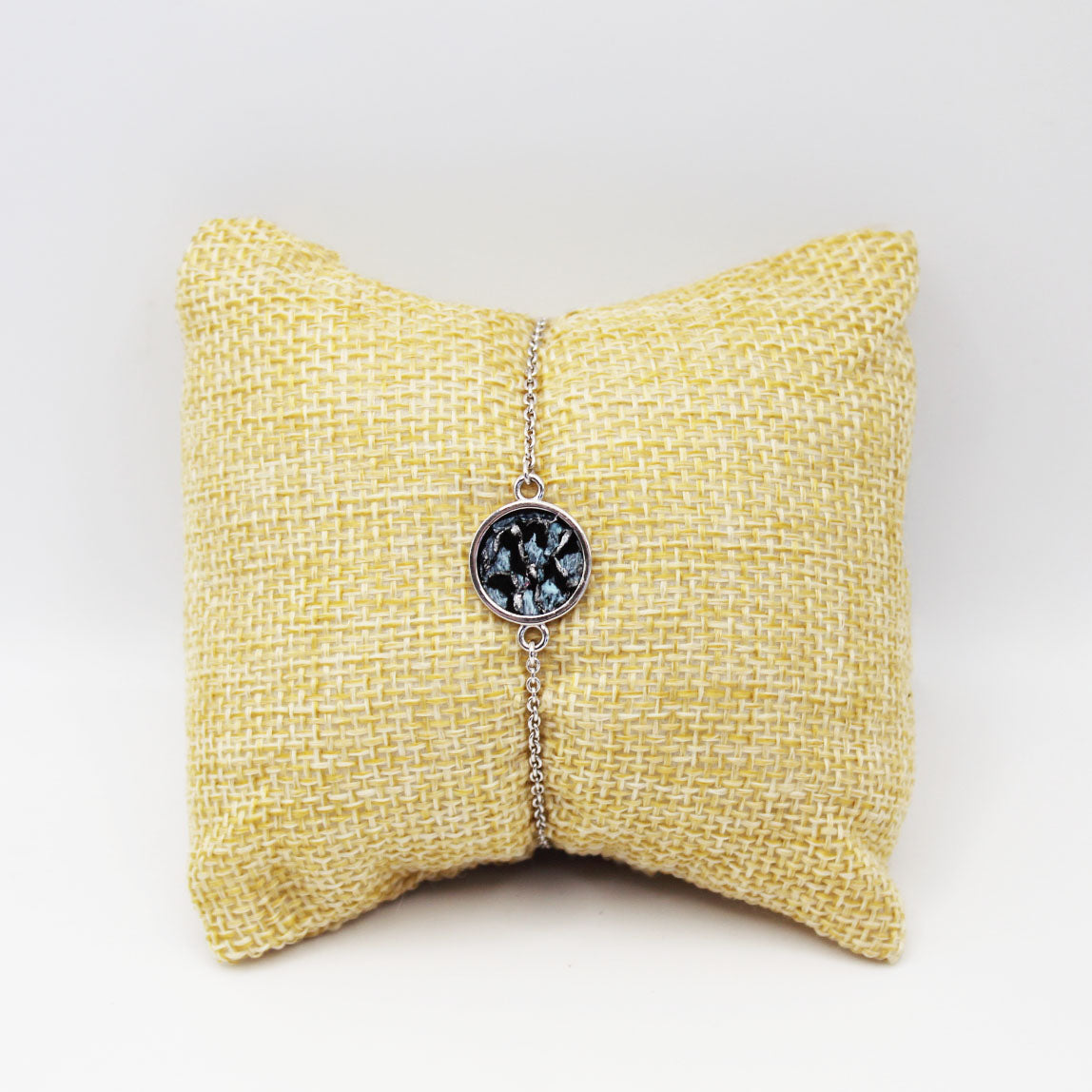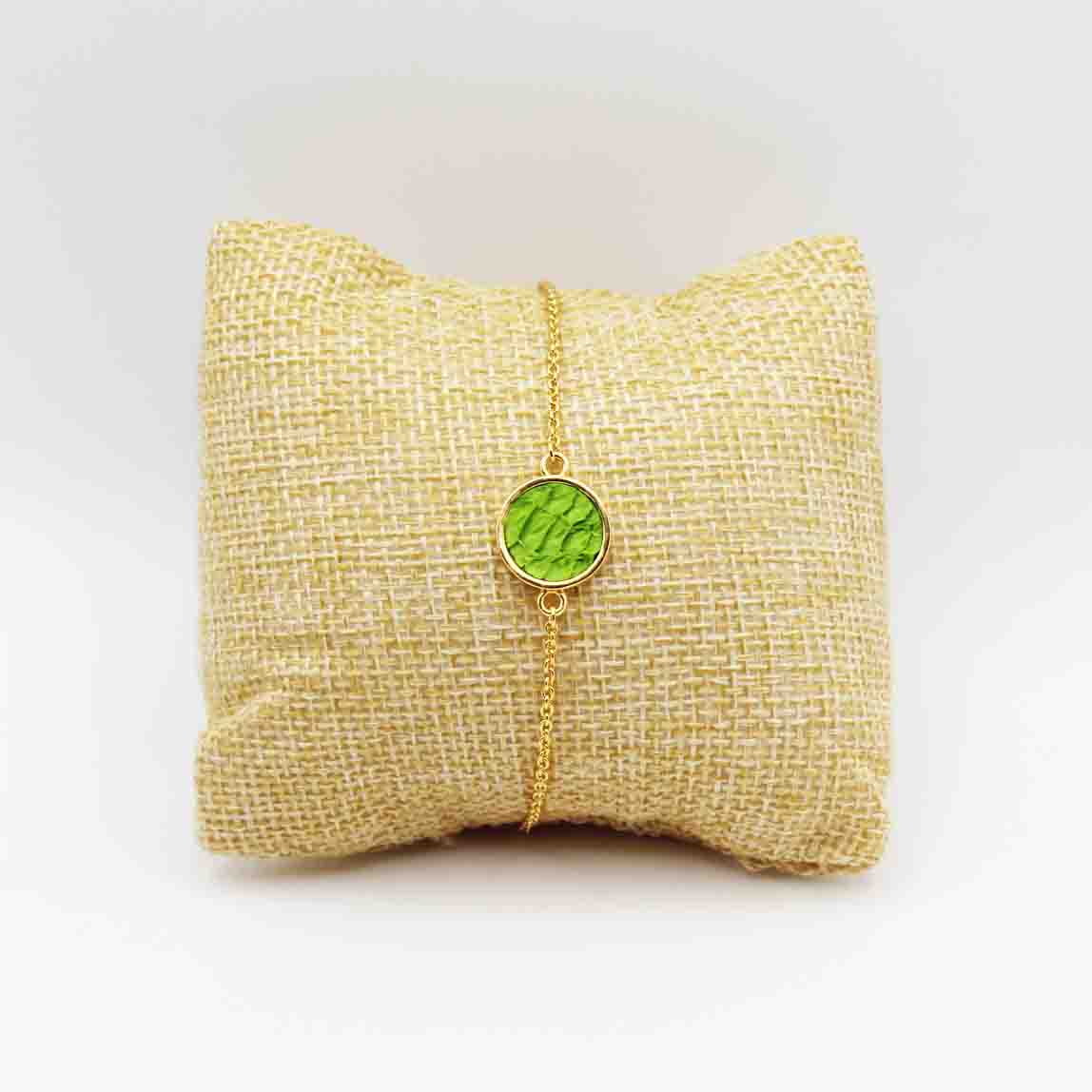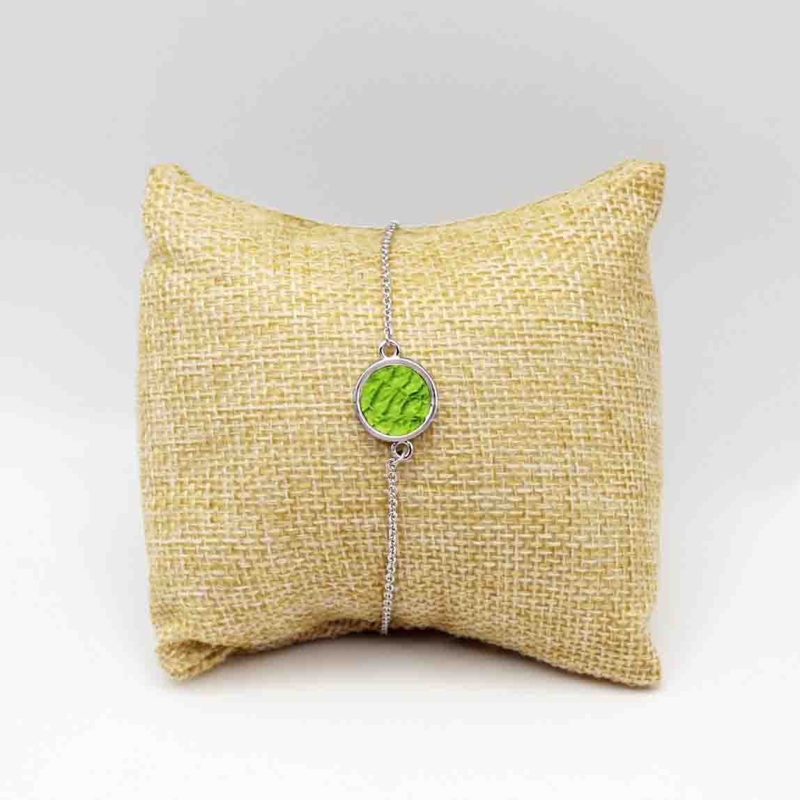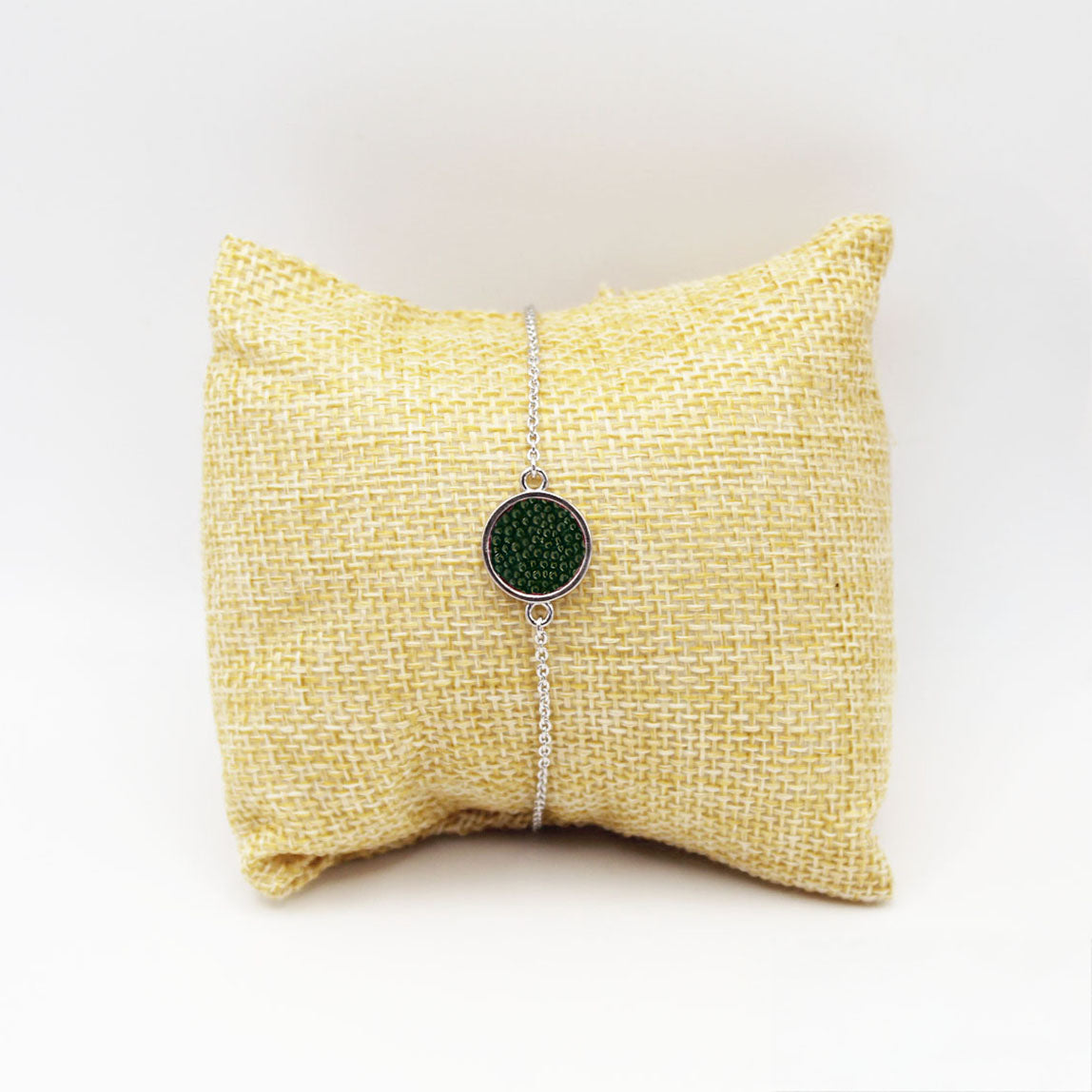 Experience the exquisite elegance of the Cooper Bracelet. Crafted with a sterling silver or 18k gold filled chain and adorned with a round leather mark filled with luxurious stingray or fish skin. This adjustable 6-8 inch bracelet is the perfect accessory for any occasion. Elevate your style with the Cooper Bracelet today.