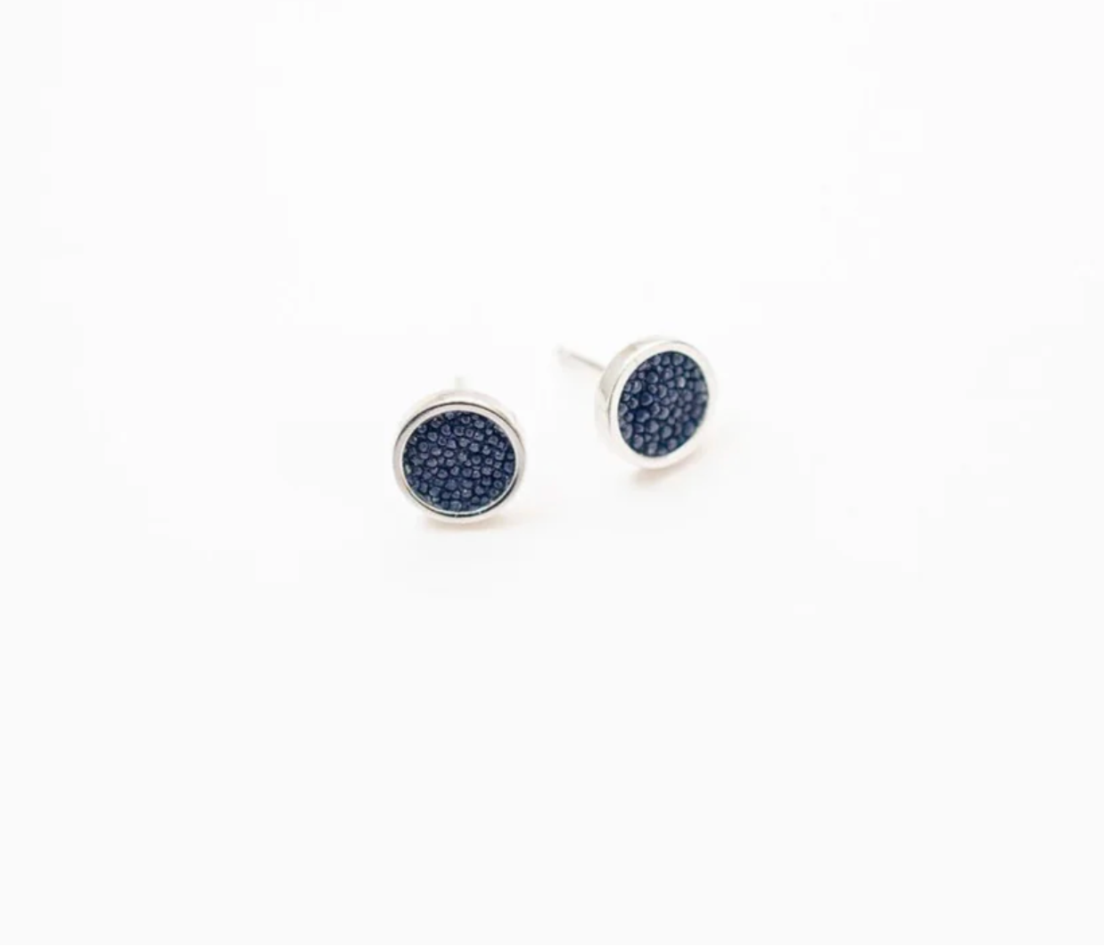 Experience unparalleled elegance and sophistication with the Edisto earrings crafted from premium fish leather. Let the unique patterns and colors captivate you, while a touch of edgy allure adds a bold and enchanting twist to your look. Stud size: 3/8" diameter.