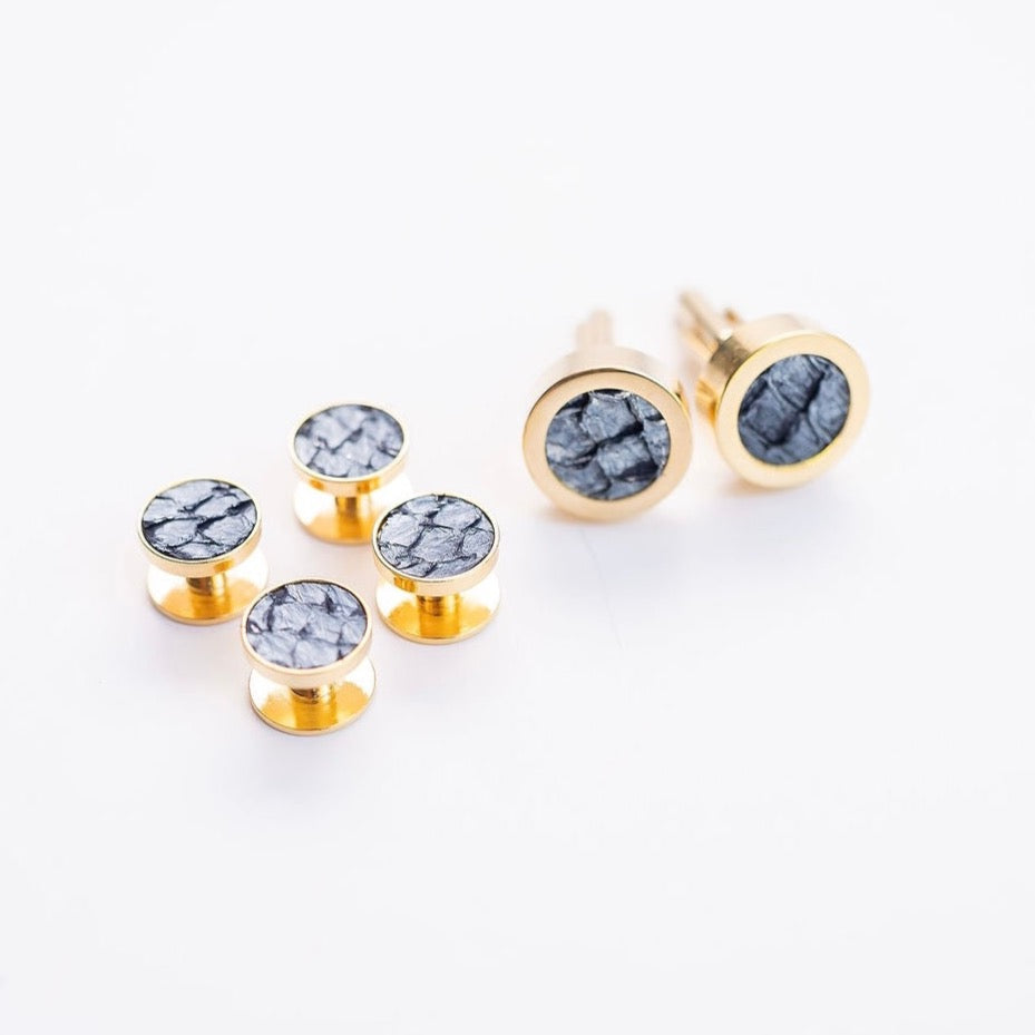 + Each Cufflink & Stud Set includes hand-selected Fish Leather for a unique coloring for a distinct touch.