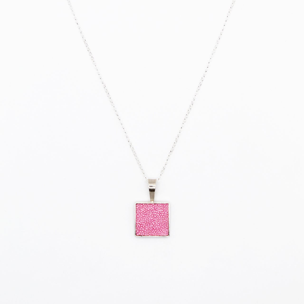 The exquisite Sandy Necklace showcases a modern square pendant with an adjustable chain, available in sterling silver or 18k gold-filled, allowing versatile wear from 12 to 24 inches. Its clean, bold square design is enhanced by a unique fish or stingray leather inlay, giving it a striking look that’s both elegant and edgy. Perfect for elevating any outfit, the Sandy Necklace is a refined accessory for those who love a touch of unique sophistication.