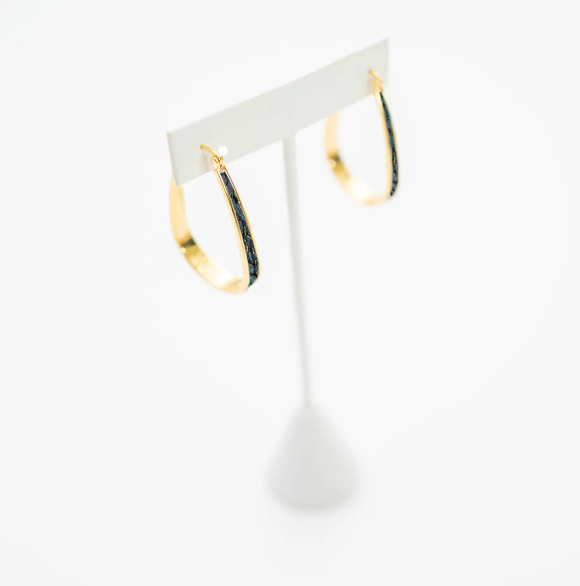 The Savannah Earring boasts a stunning teardrop hoop design adorned with fish leather, showcasing a delightful array of colors and patterns that add a dynamic and eye-catching flair to your ensemble. Earring Length: 1.5" long.
