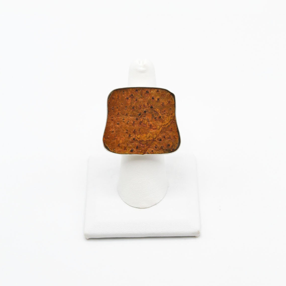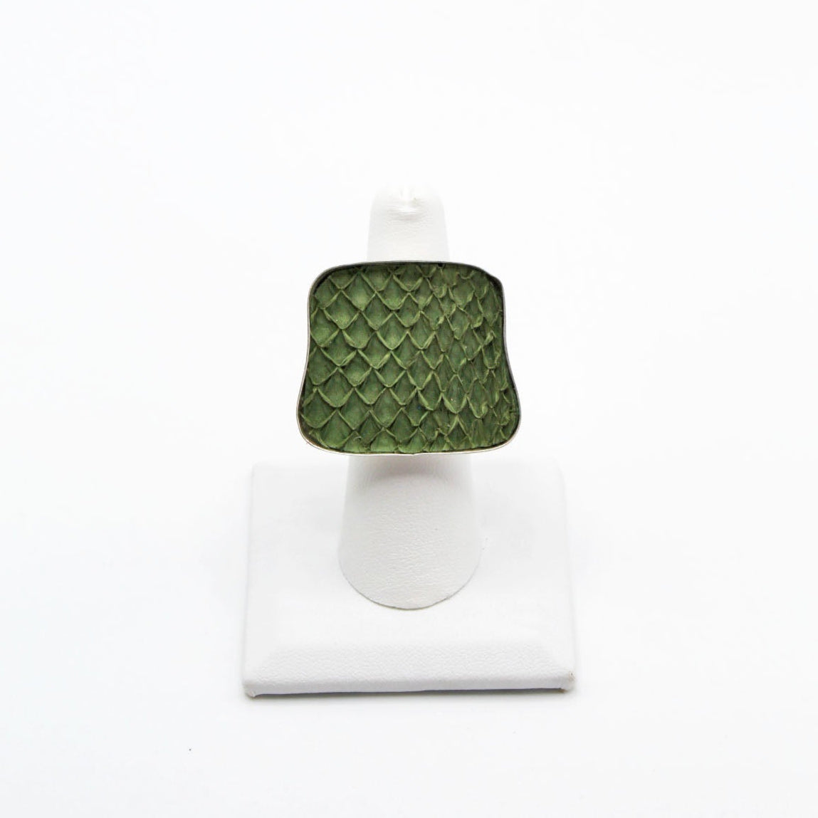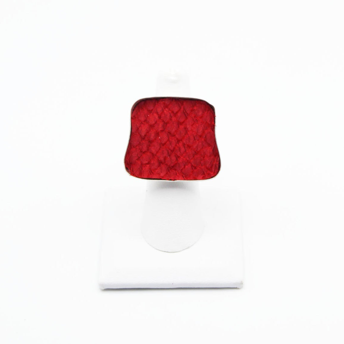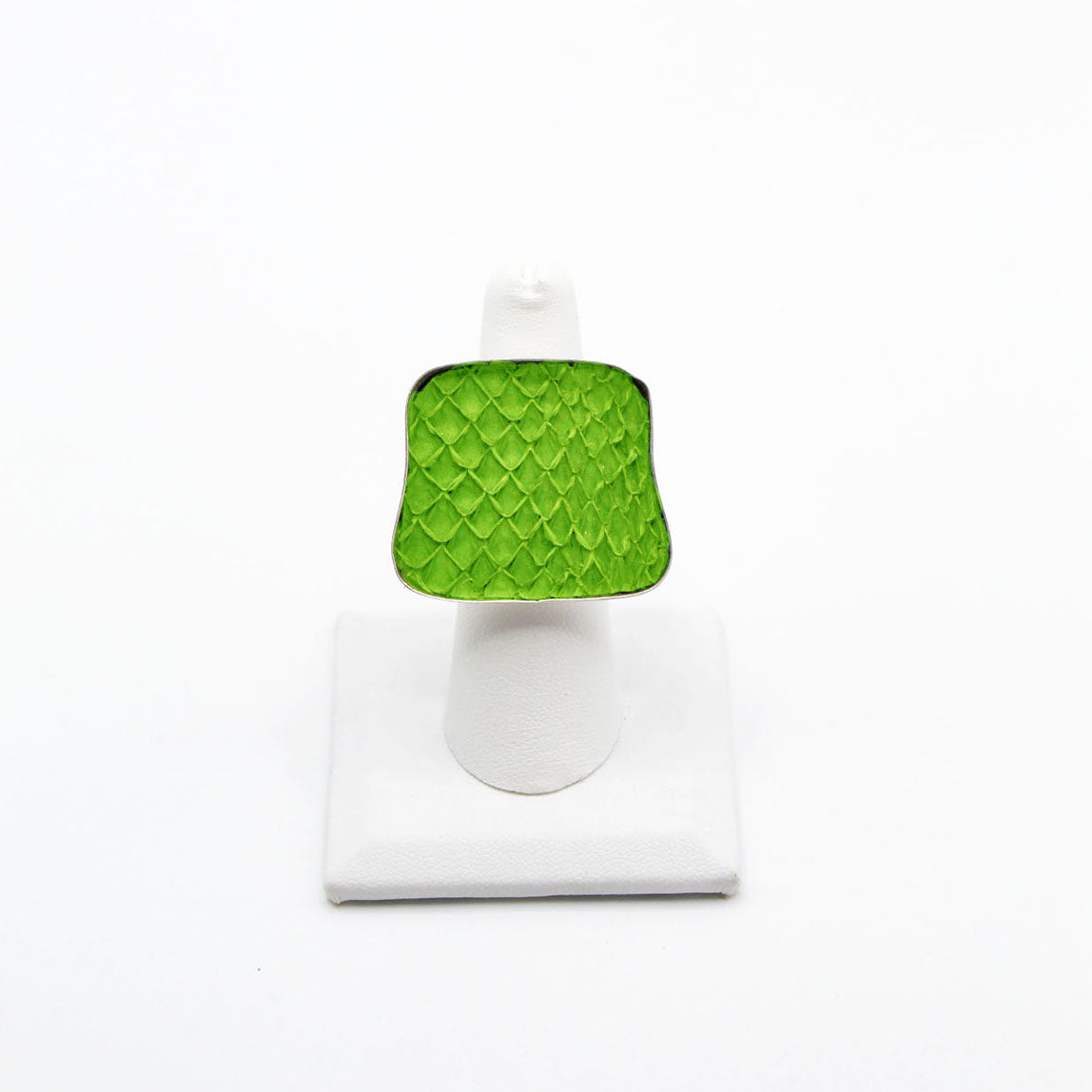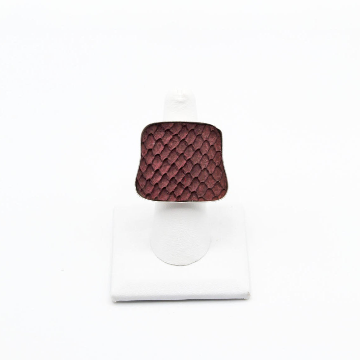 A true statement piece, this bold ring features a large, eye-catching frame filled with vibrant, textured fish leather that steals the spotlight. Designed to stand out, the Brazos balances modern edge with organic elegance, making it the perfect piece to elevate any look. Surface width: 1 3/16"