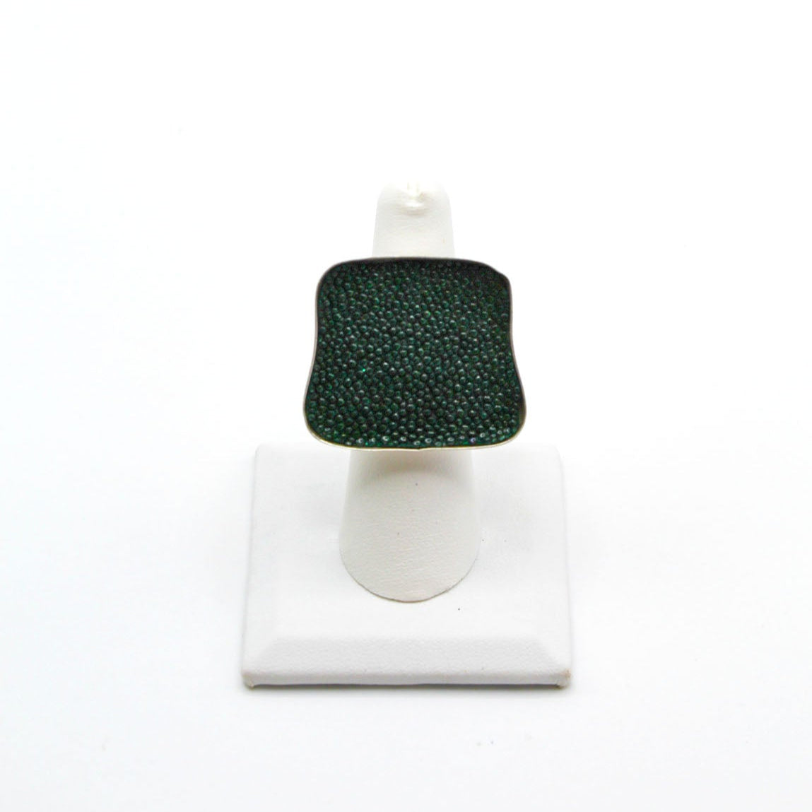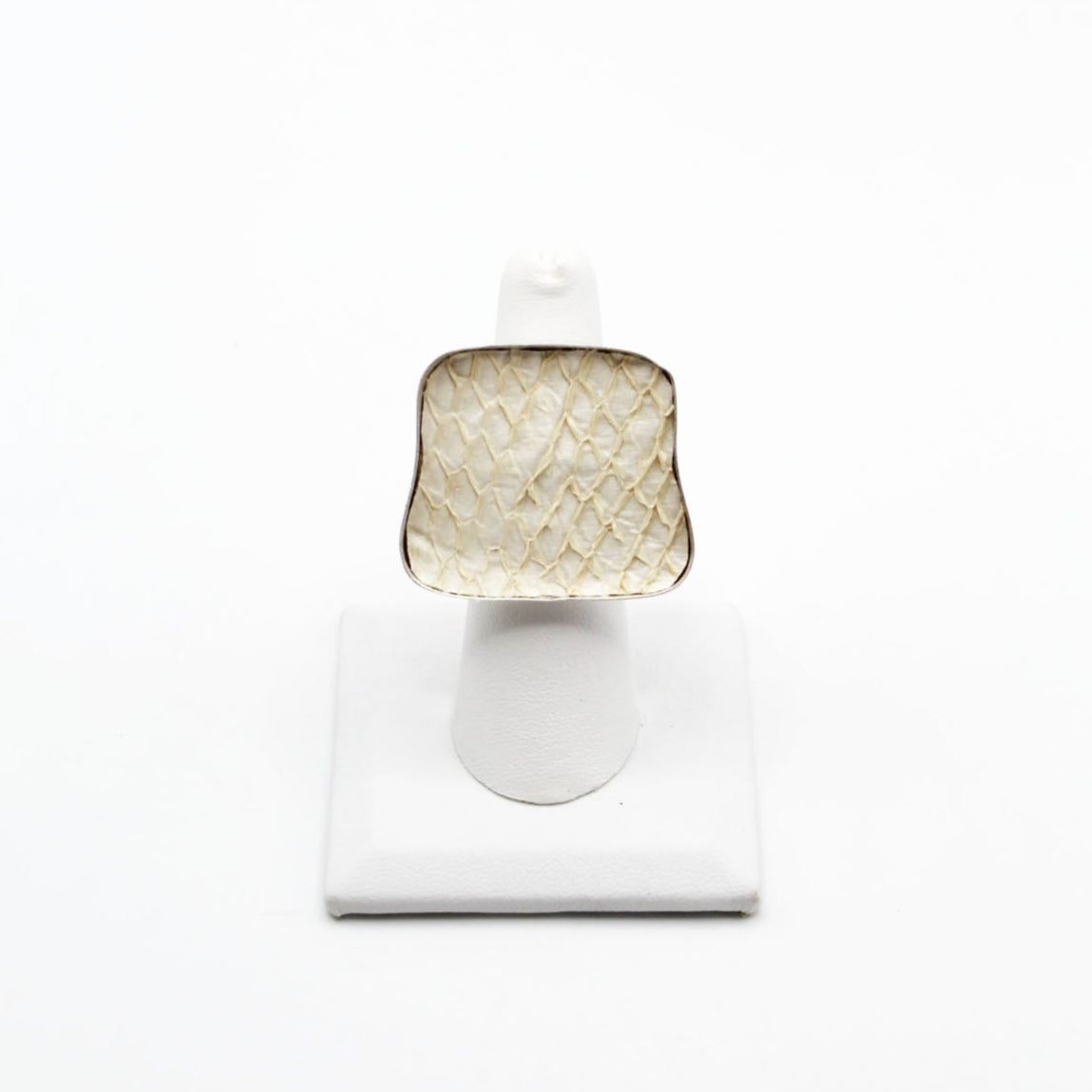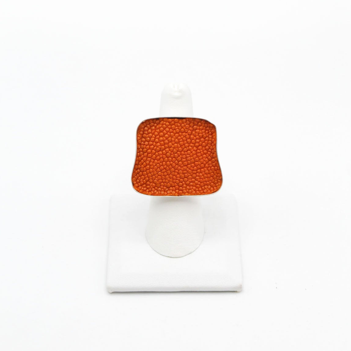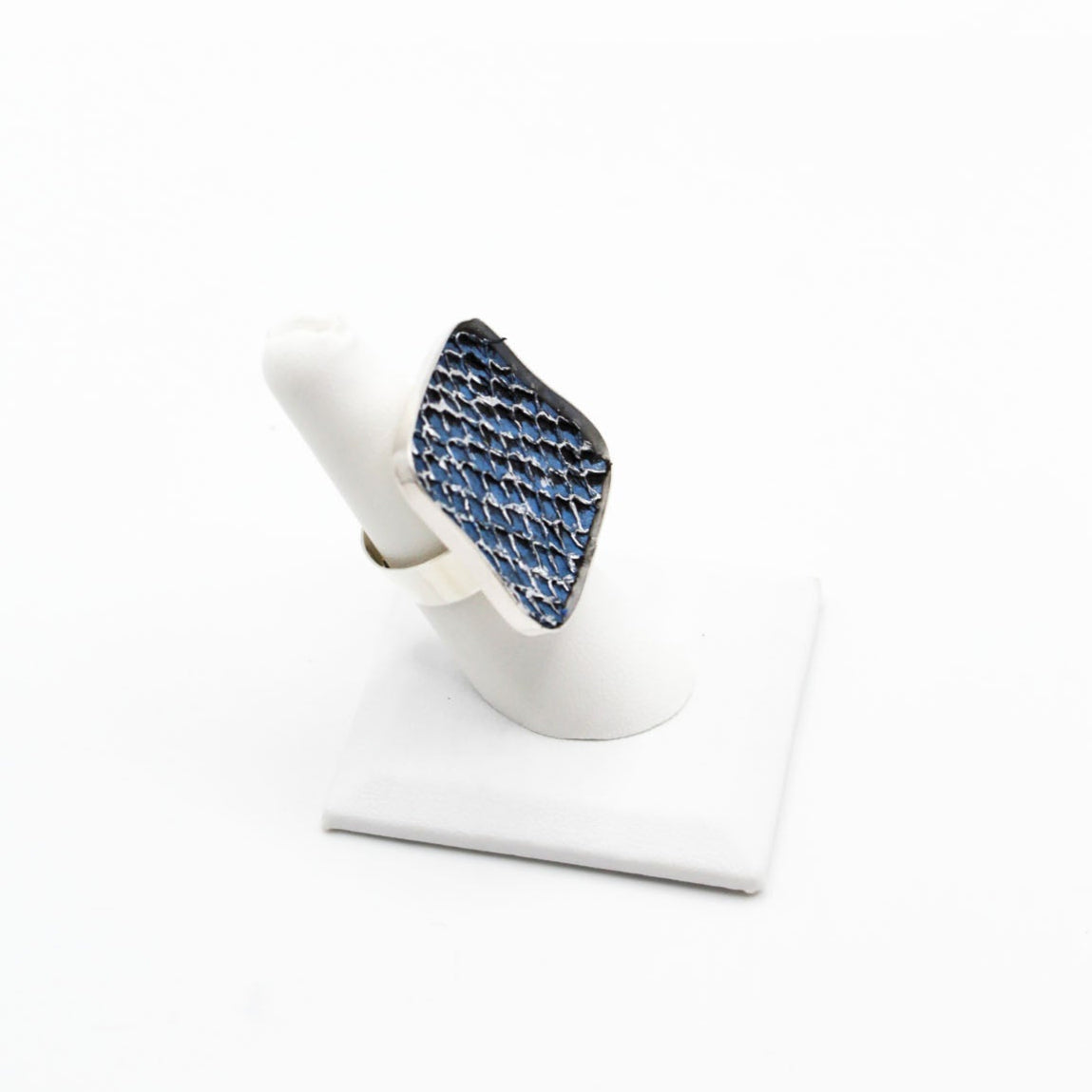 A true statement piece, this bold ring features a large, eye-catching frame filled with vibrant, textured fish leather that steals the spotlight. Designed to stand out, the Brazos balances modern edge with organic elegance, making it the perfect piece to elevate any look. Surface width: 1 3/16"