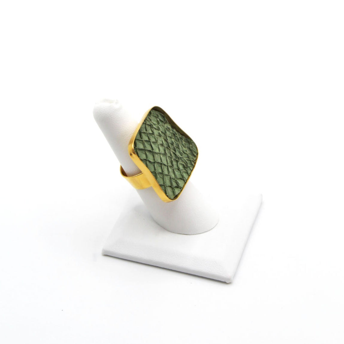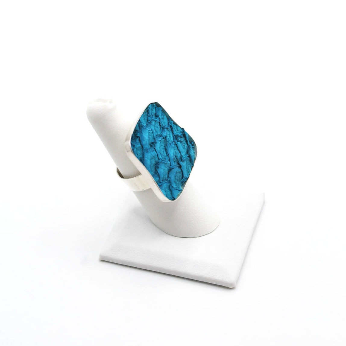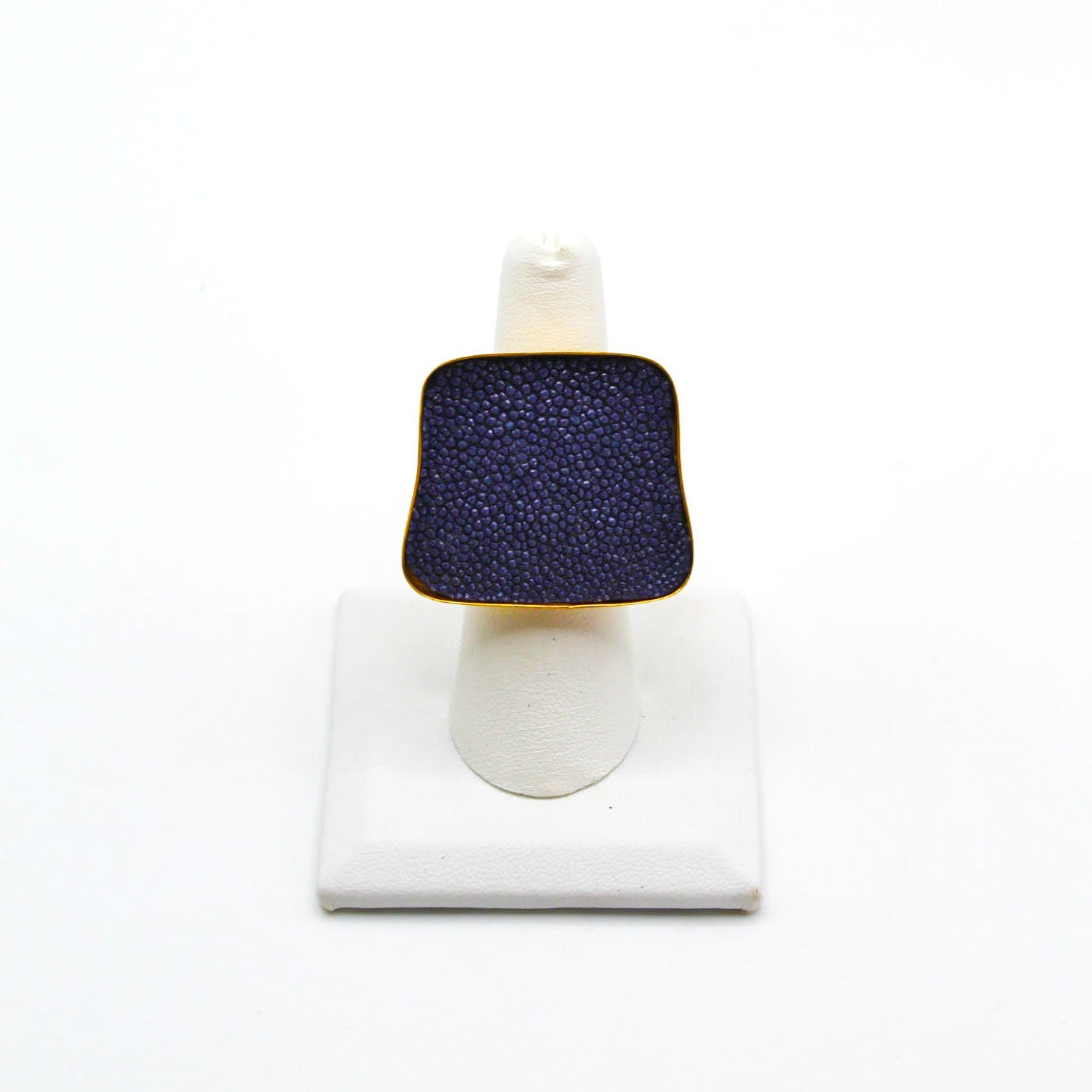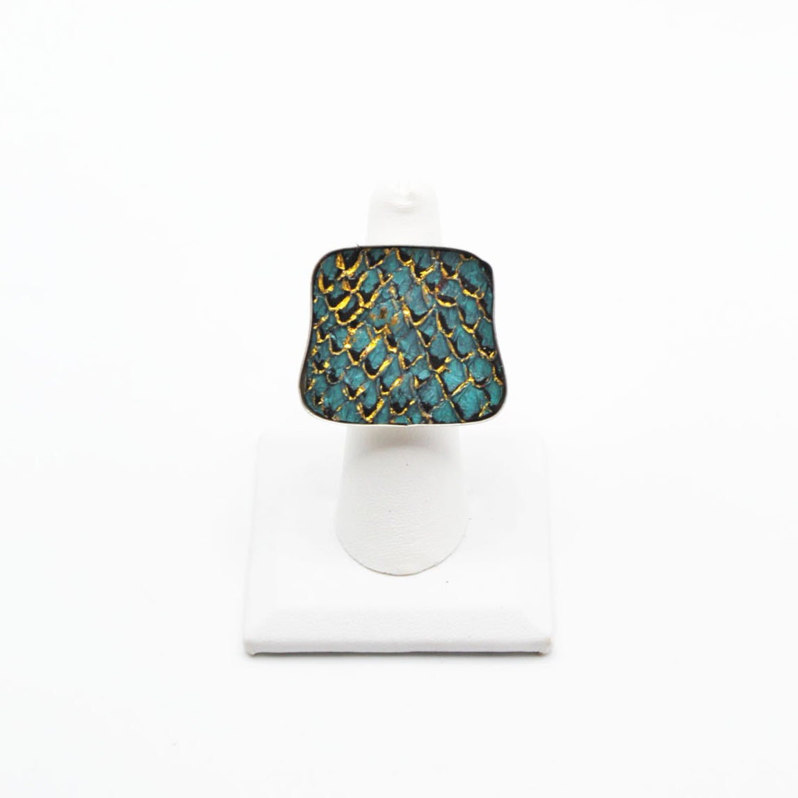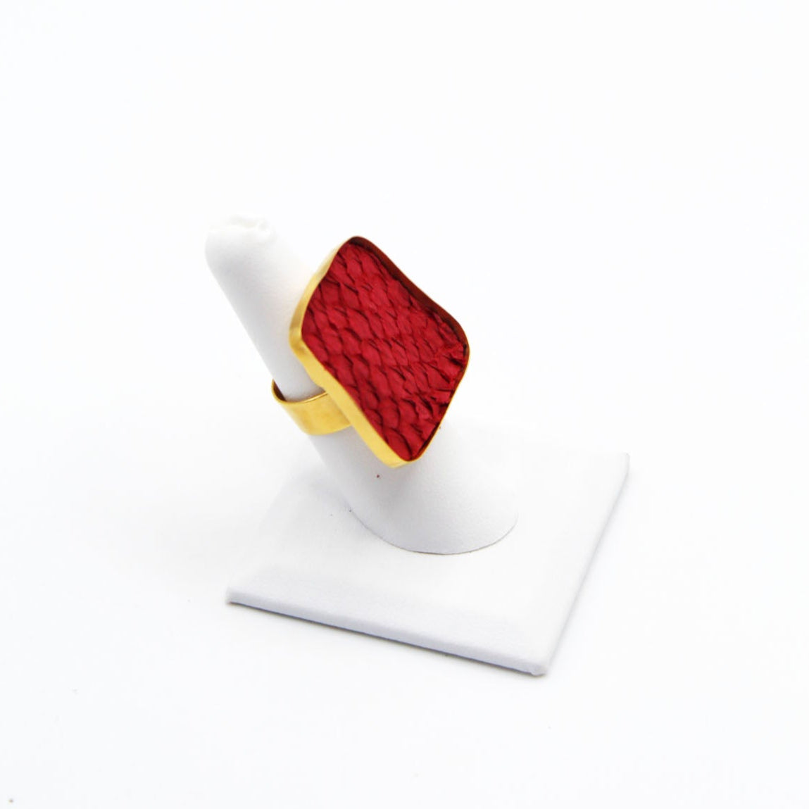 A true statement piece, this bold ring features a large, eye-catching frame filled with vibrant, textured fish leather that steals the spotlight. Designed to stand out, the Brazos balances modern edge with organic elegance, making it the perfect piece to elevate any look. Surface width: 1 3/16"