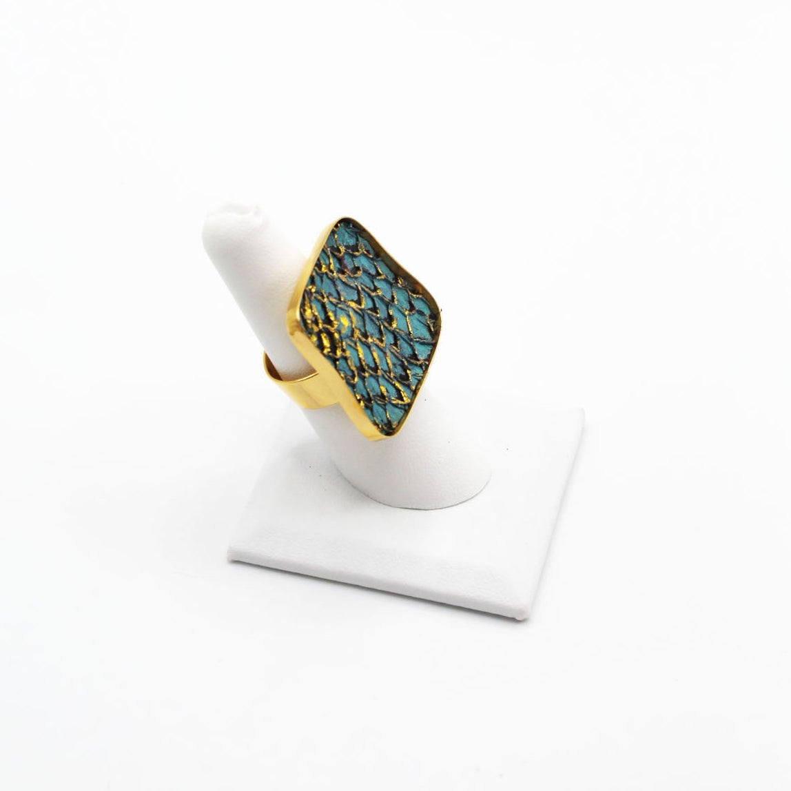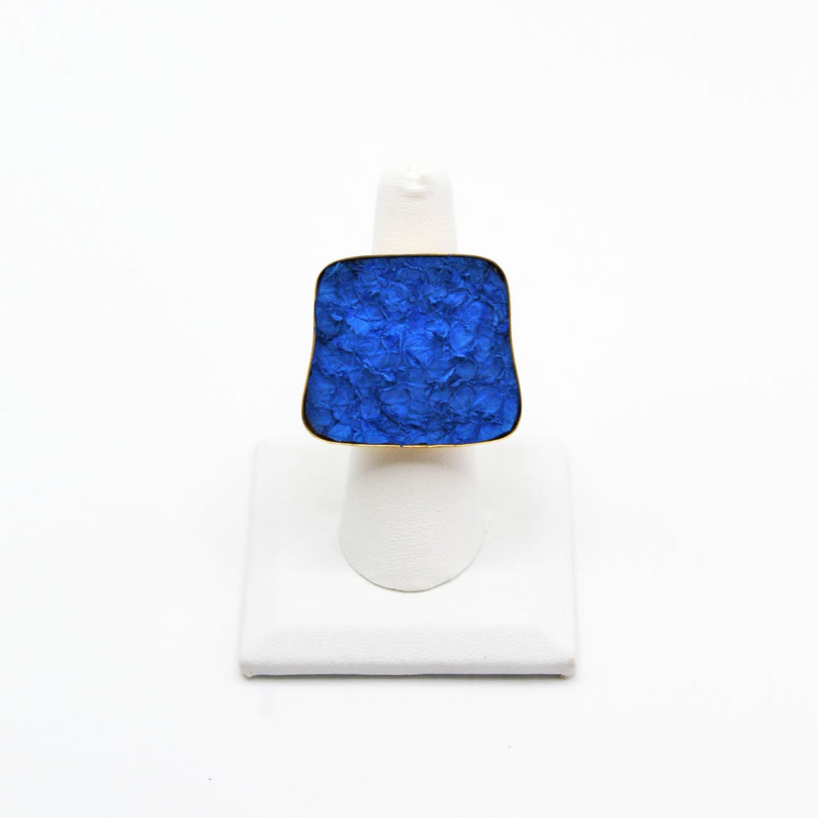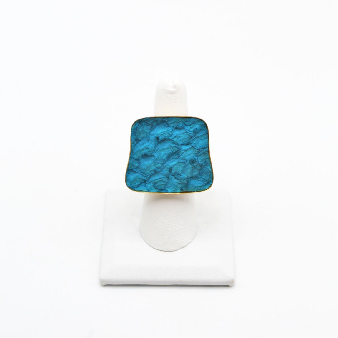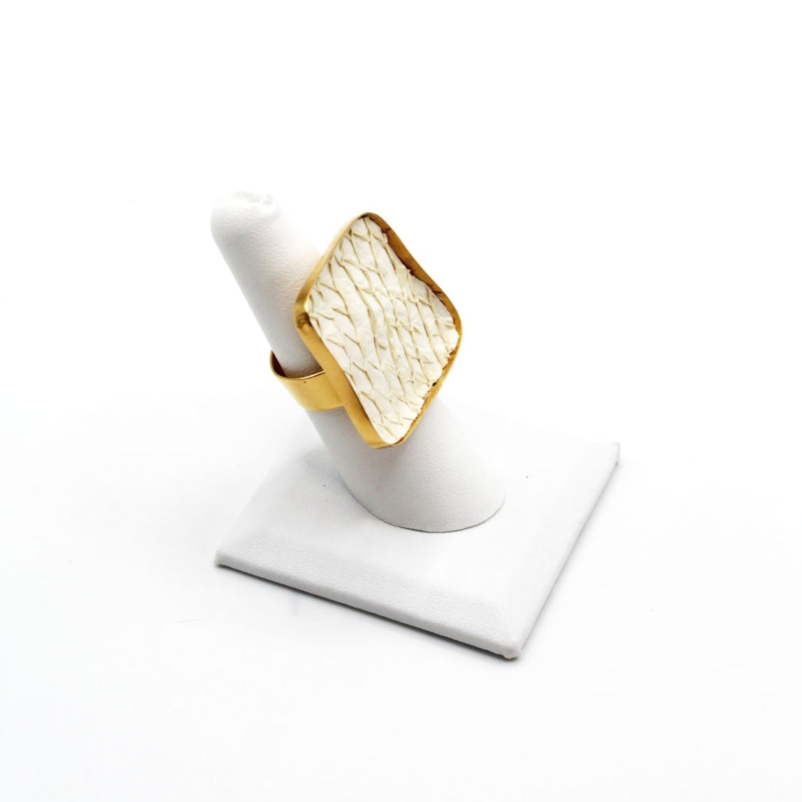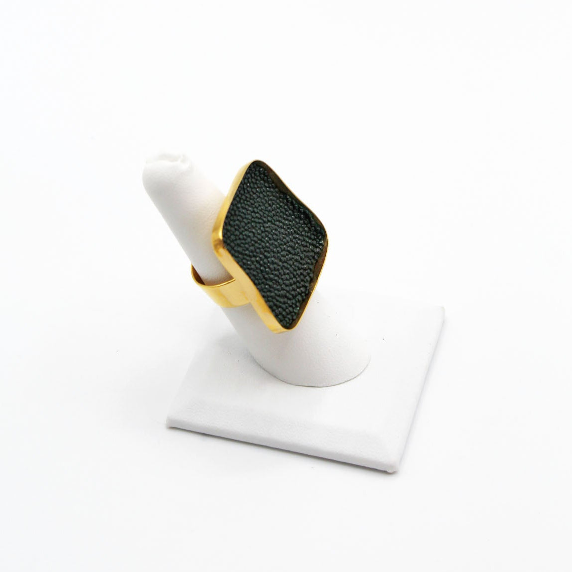 A true statement piece, this bold ring features a large, eye-catching frame filled with vibrant, textured fish leather that steals the spotlight. Designed to stand out, the Brazos balances modern edge with organic elegance, making it the perfect piece to elevate any look. Surface width: 1 3/16"