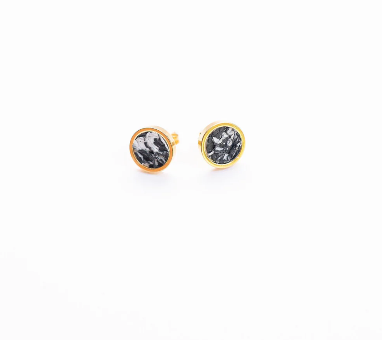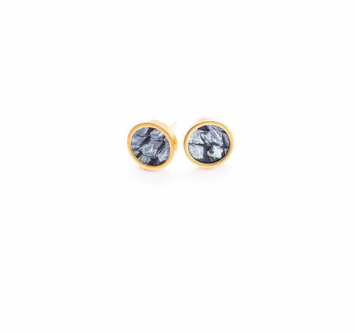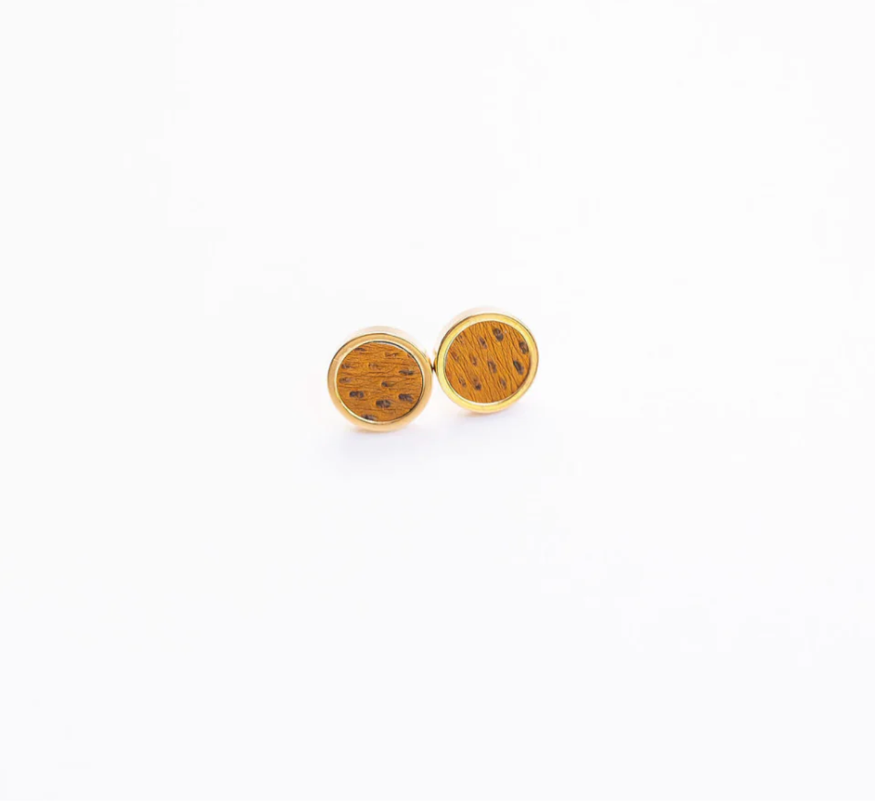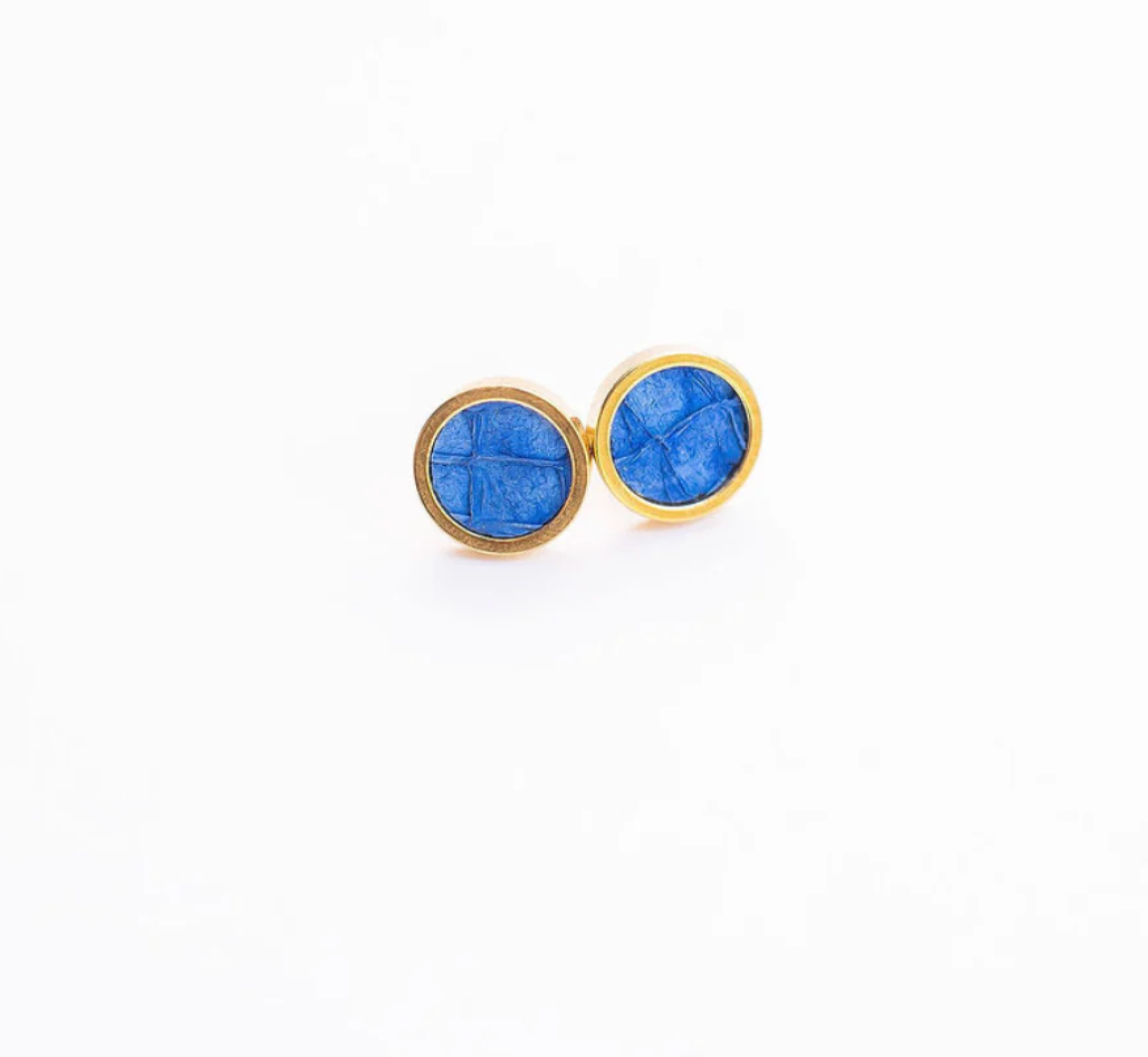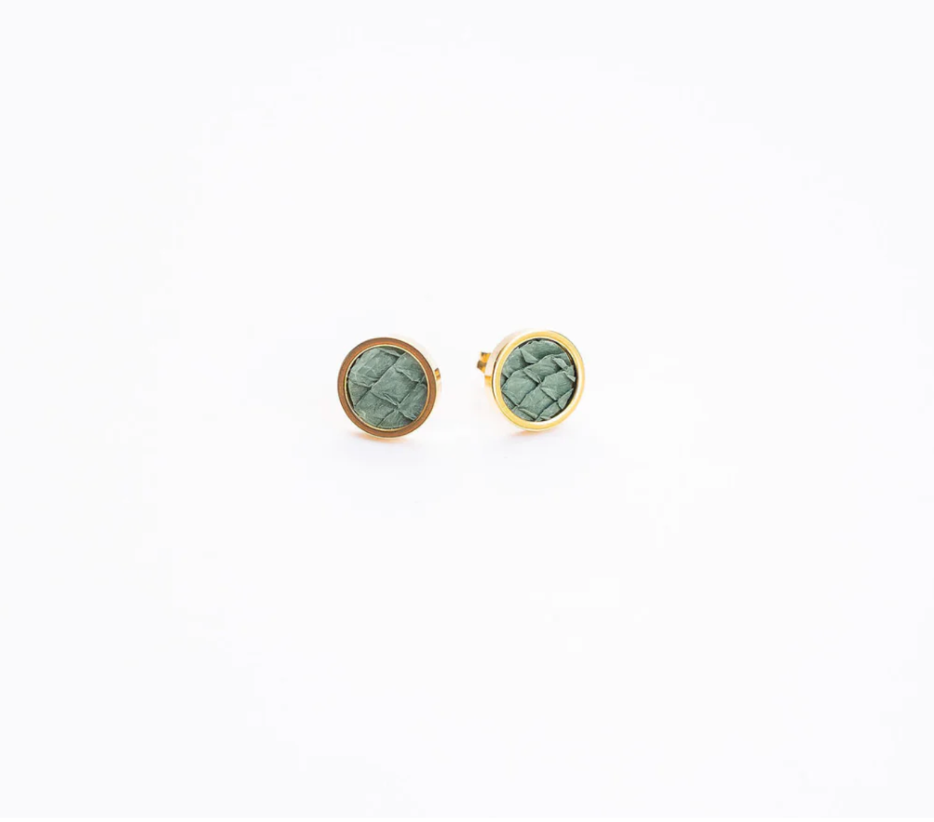Experience unparalleled elegance and sophistication with the Edisto earrings crafted from premium fish leather. Let the unique patterns and colors captivate you, while a touch of edgy allure adds a bold and enchanting twist to your look. Stud size: 3/8" diameter.