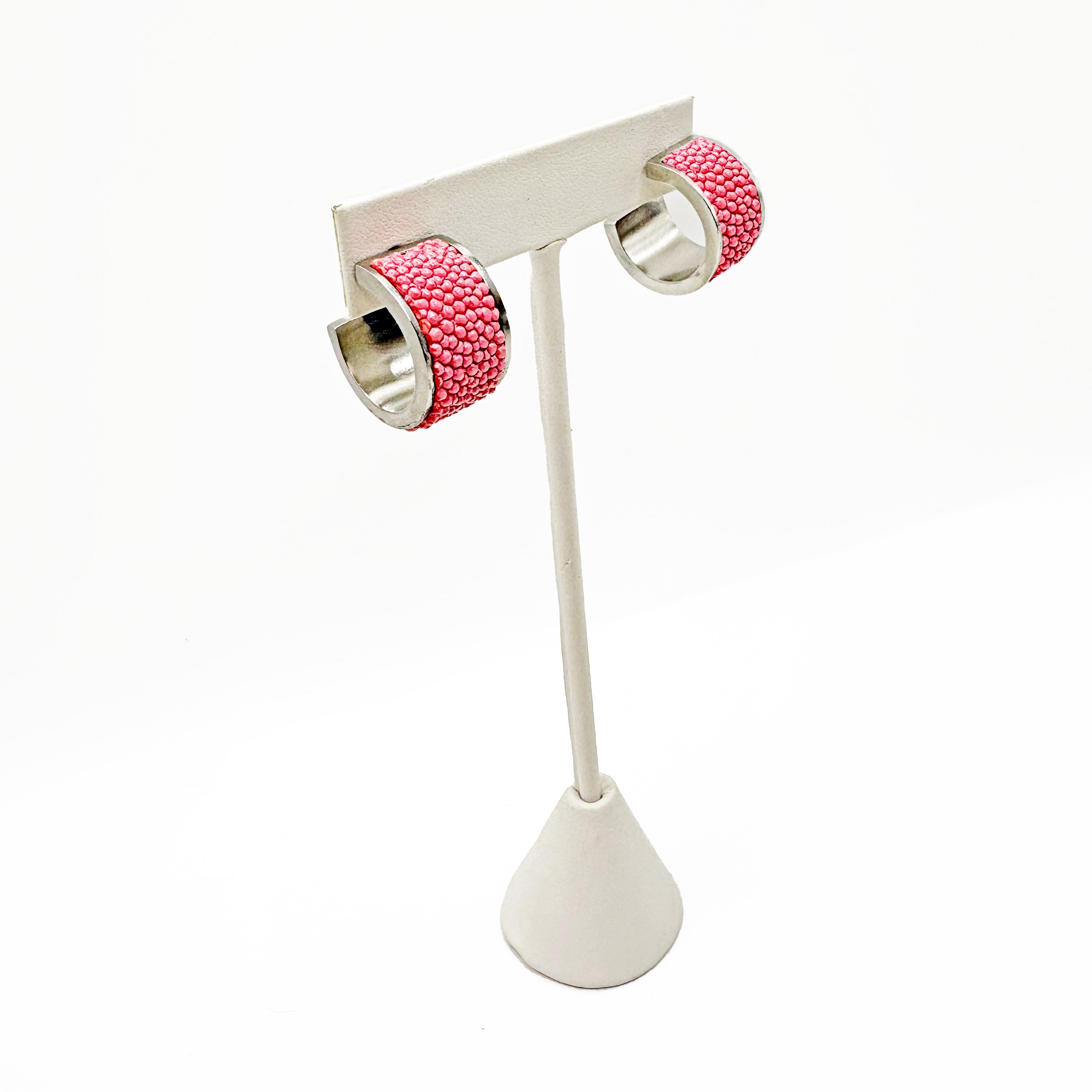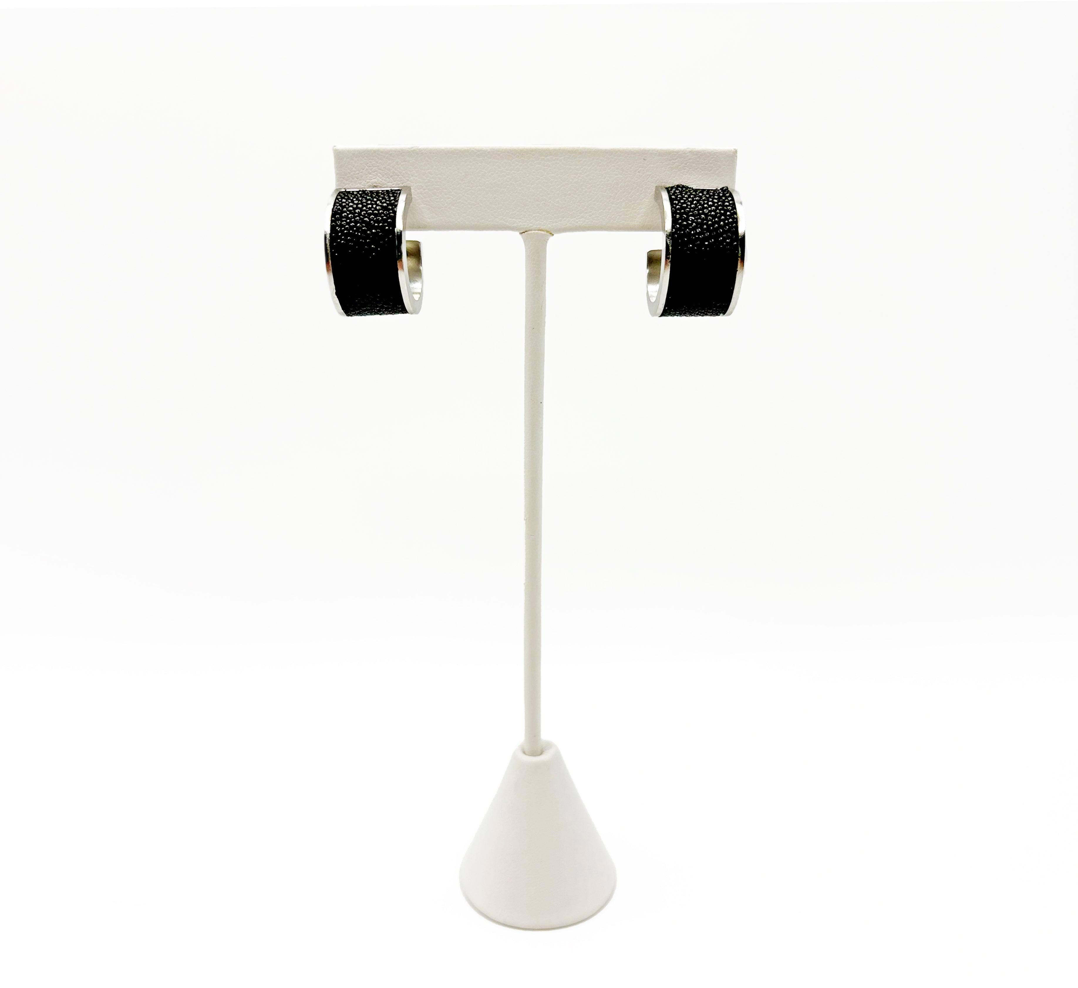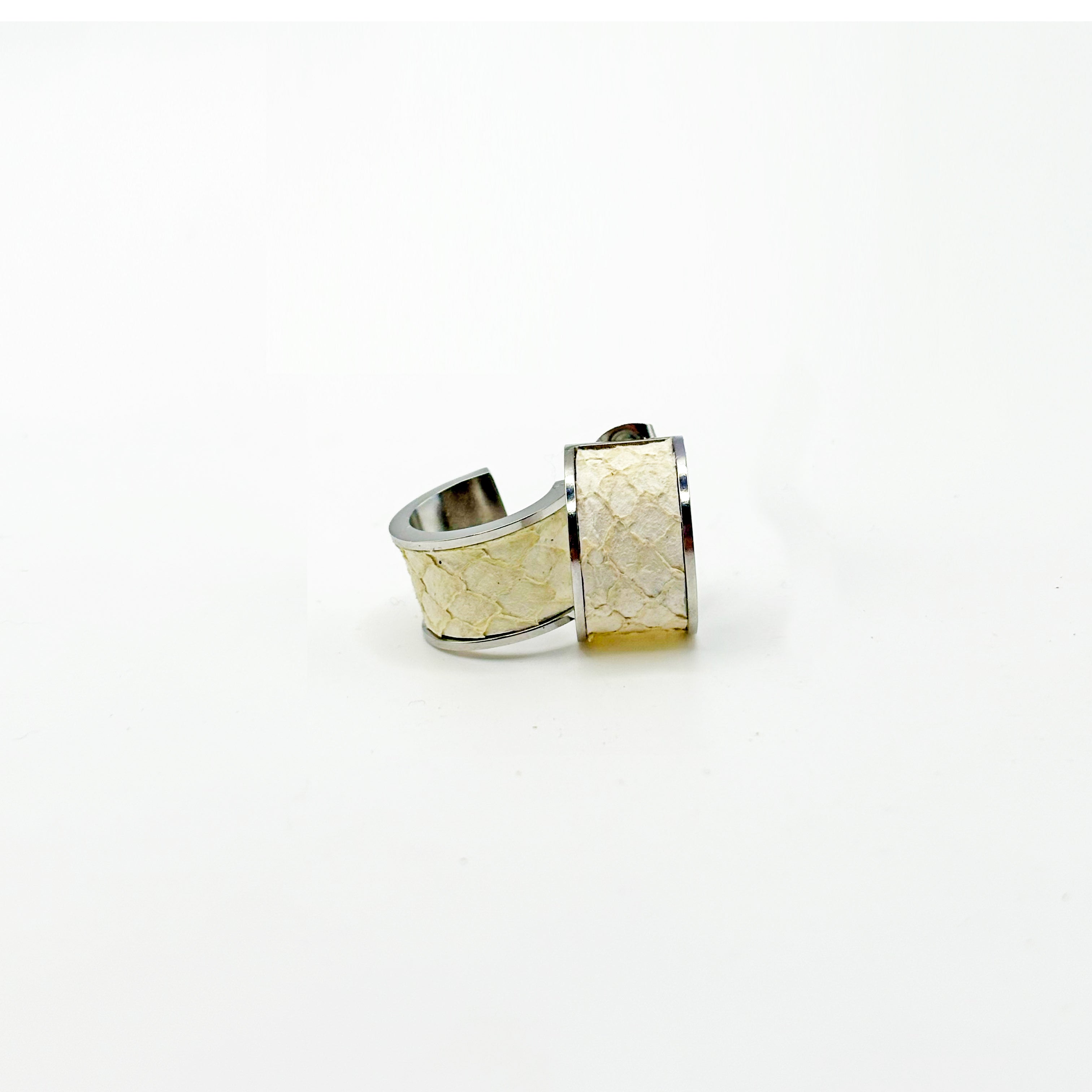 Make a bold yet graceful statement with our Folly Hoop Earrings, crafted from sustainably sourced fish leather and framed in 18k Vermeil or Rhodium. The natural texture of the fish skin adds depth and shimmer, creating a look that’s both modern and timeless.