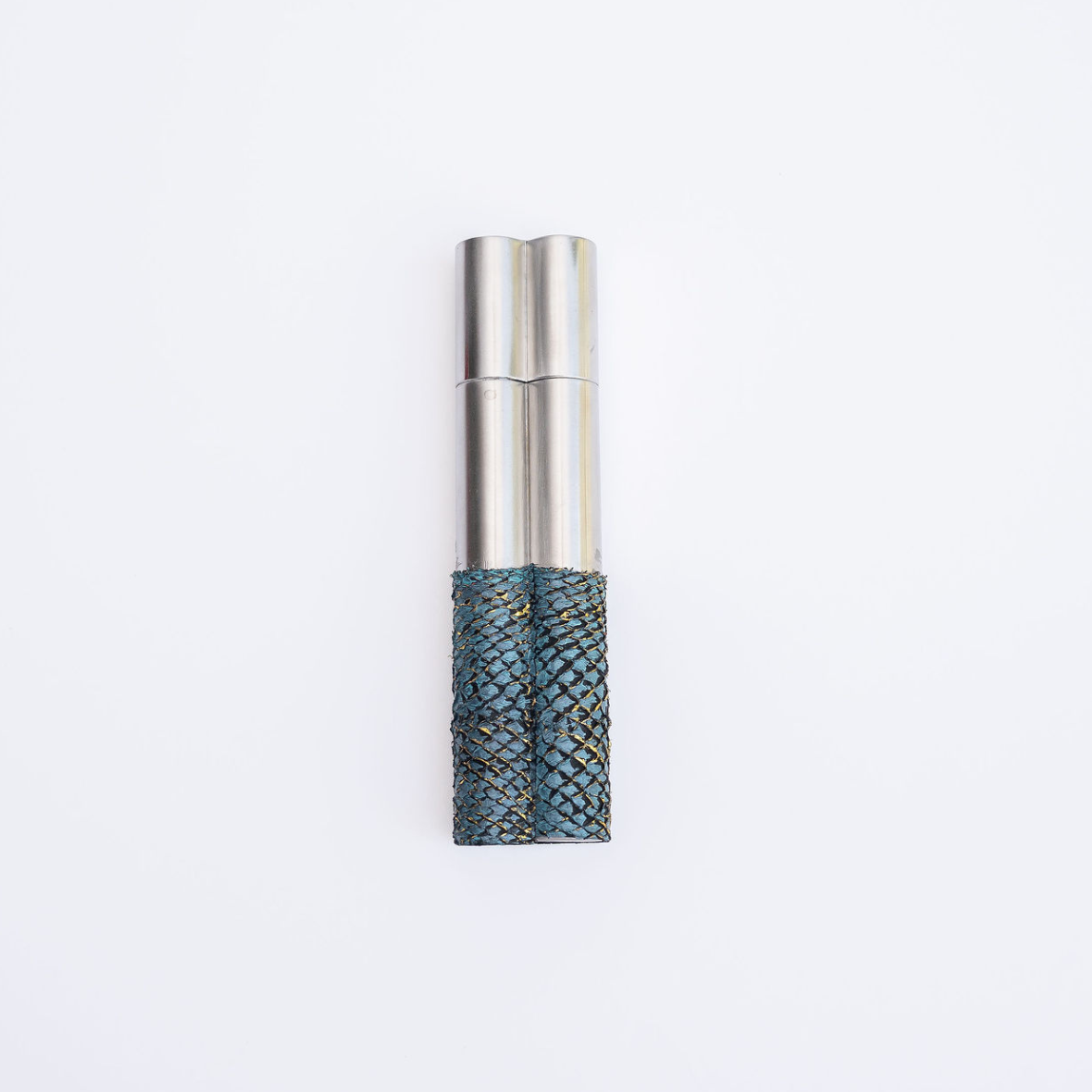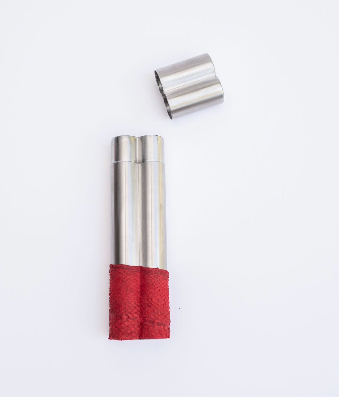 The Lawton Cigar Case is a sleek stainless-steel case wrapped in hand-selected fish leather, combining durability with a touch of aquatic elegance. Perfect for groomsmen's gifts!