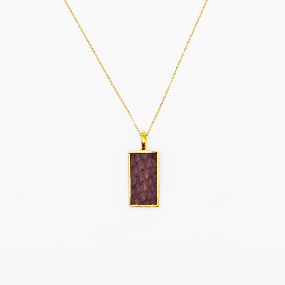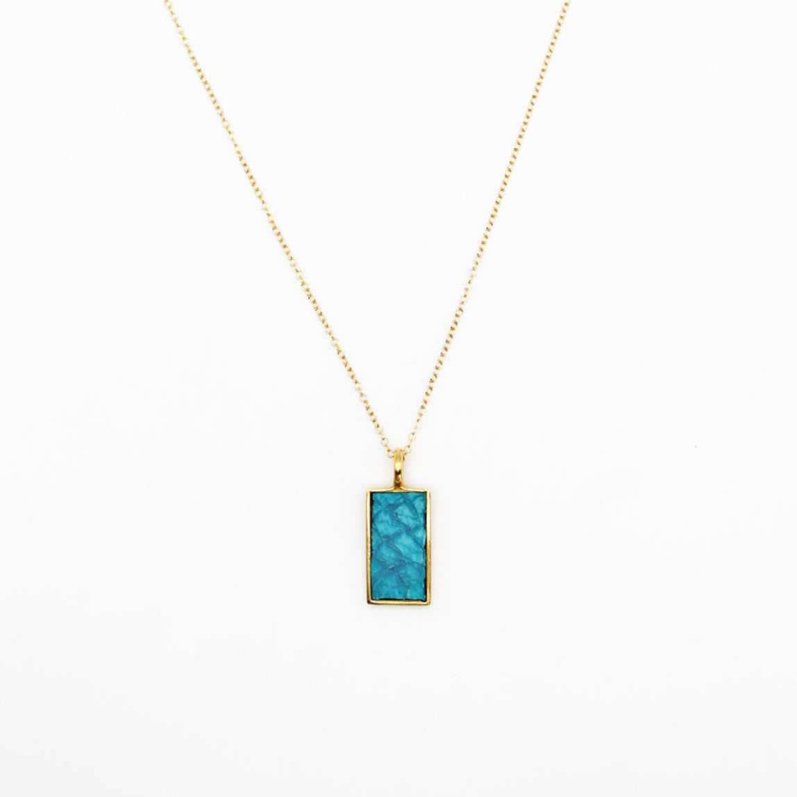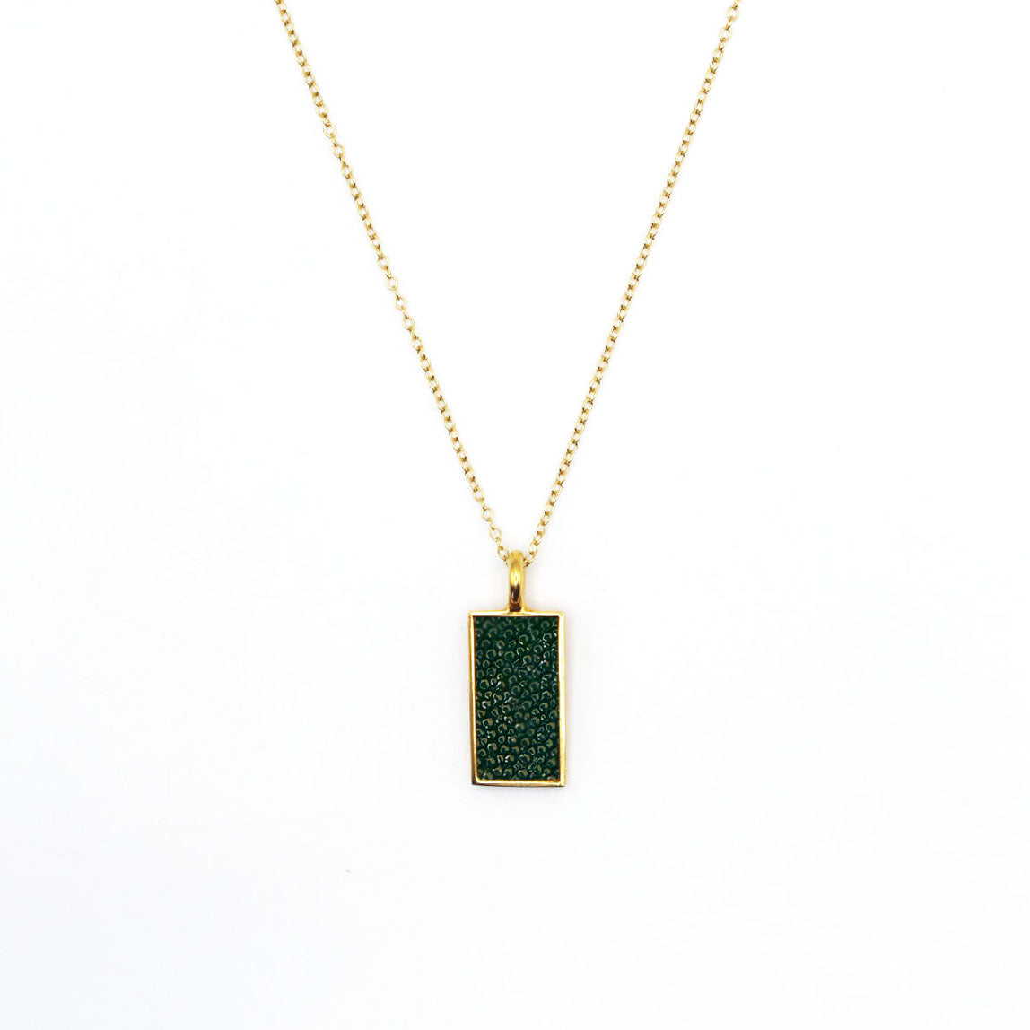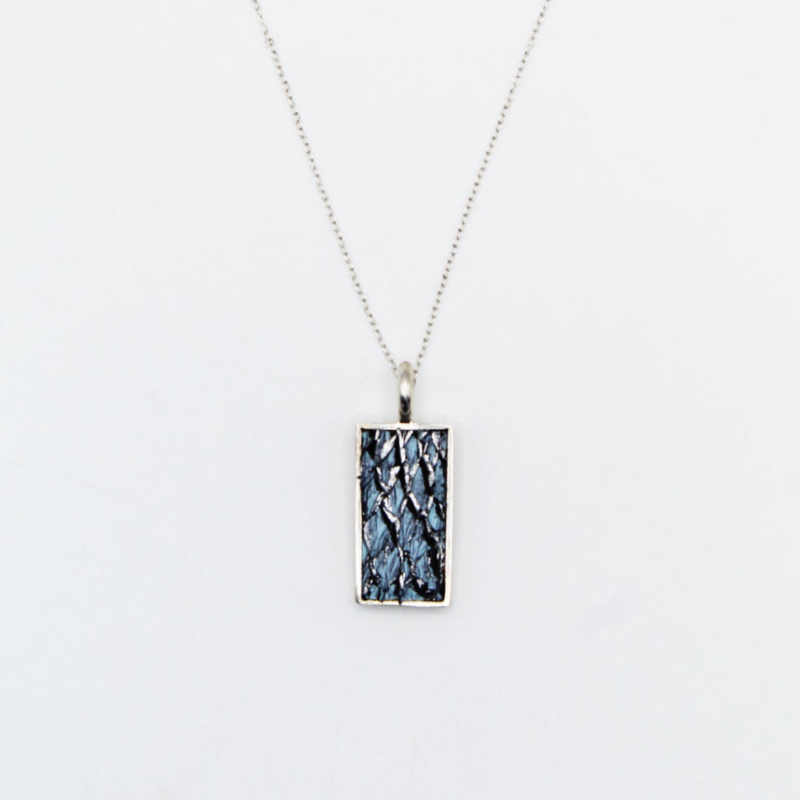 The stunning Saluda Necklace features an adjustable chain made with sterling silver or gold filled, allowing you to wear it at any length between 12-24 inches. The vertical rectangle design is complimented by a unique fish or stingray leather insert, making it a truly one of a kind accessory. Elevate any outfit with this bold and stylish necklace.