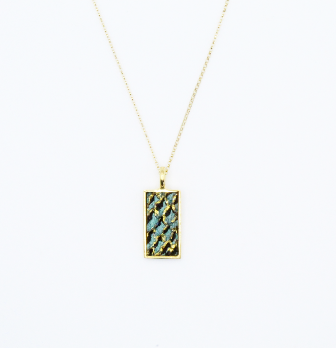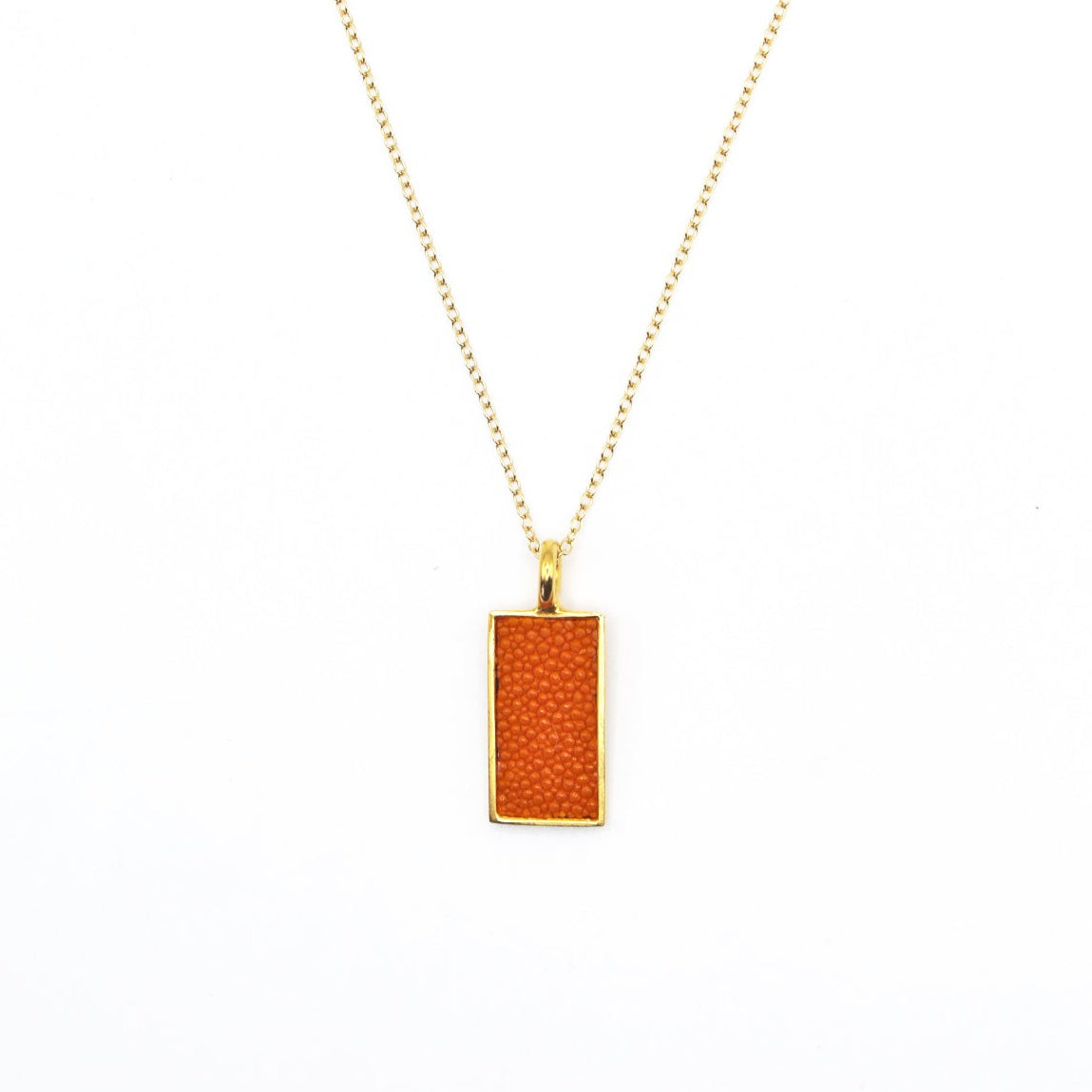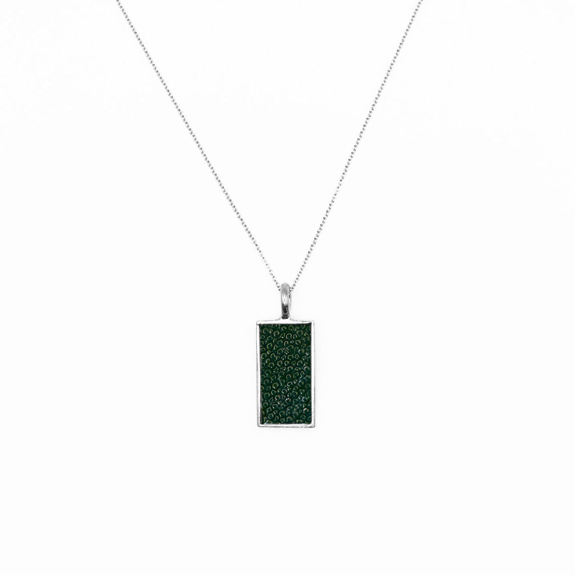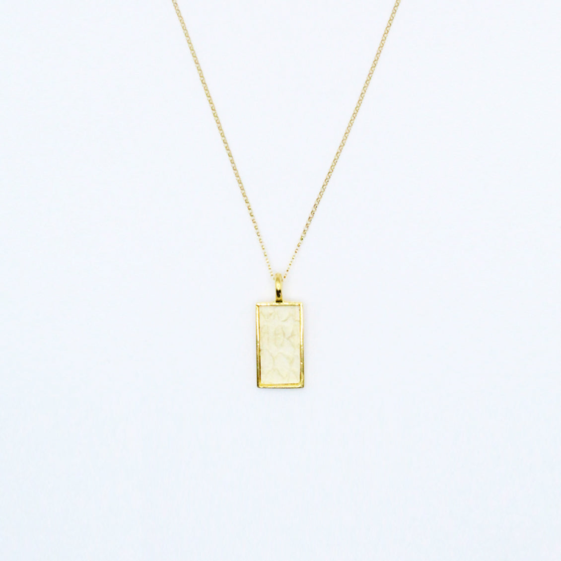 The stunning Saluda Necklace features an adjustable chain made with sterling silver or gold filled, allowing you to wear it at any length between 12-24 inches. The vertical rectangle design is complimented by a unique fish or stingray leather insert, making it a truly one of a kind accessory. Elevate any outfit with this bold and stylish necklace.