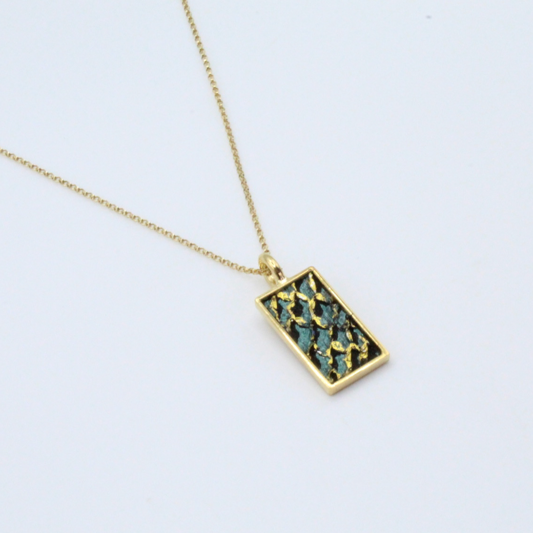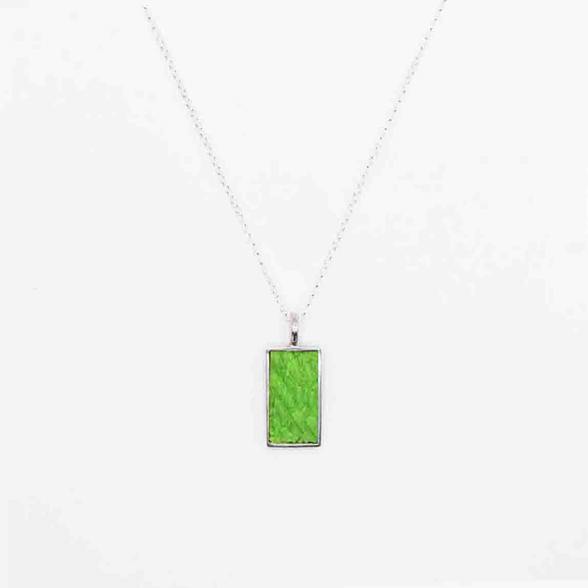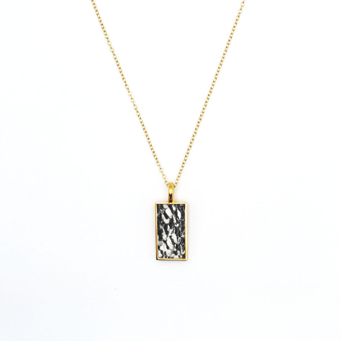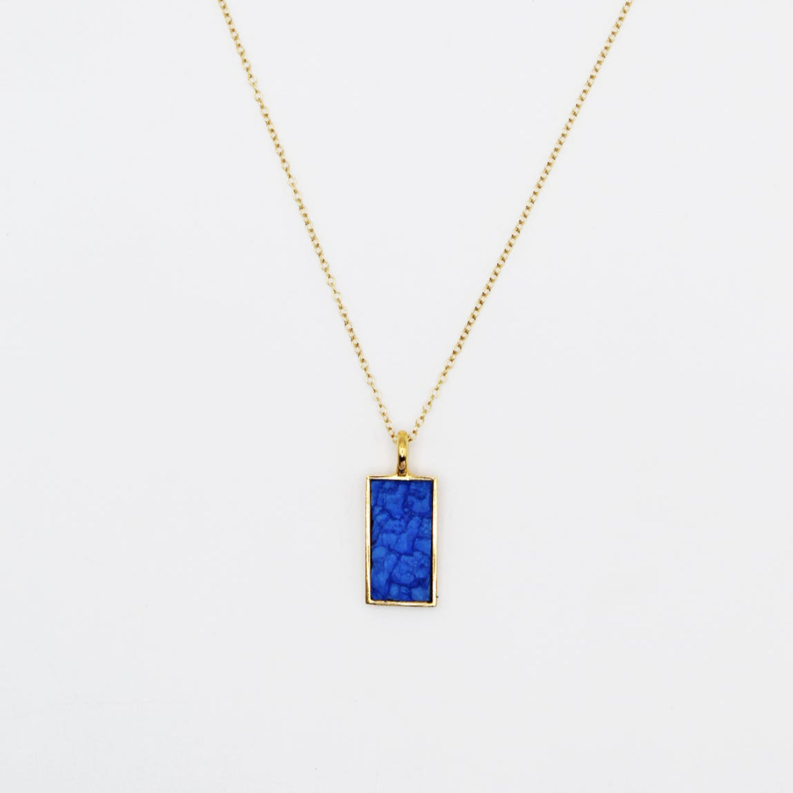 The stunning Saluda Necklace features an adjustable chain made with sterling silver or gold filled, allowing you to wear it at any length between 12-24 inches. The vertical rectangle design is complimented by a unique fish or stingray leather insert, making it a truly one of a kind accessory. Elevate any outfit with this bold and stylish necklace.