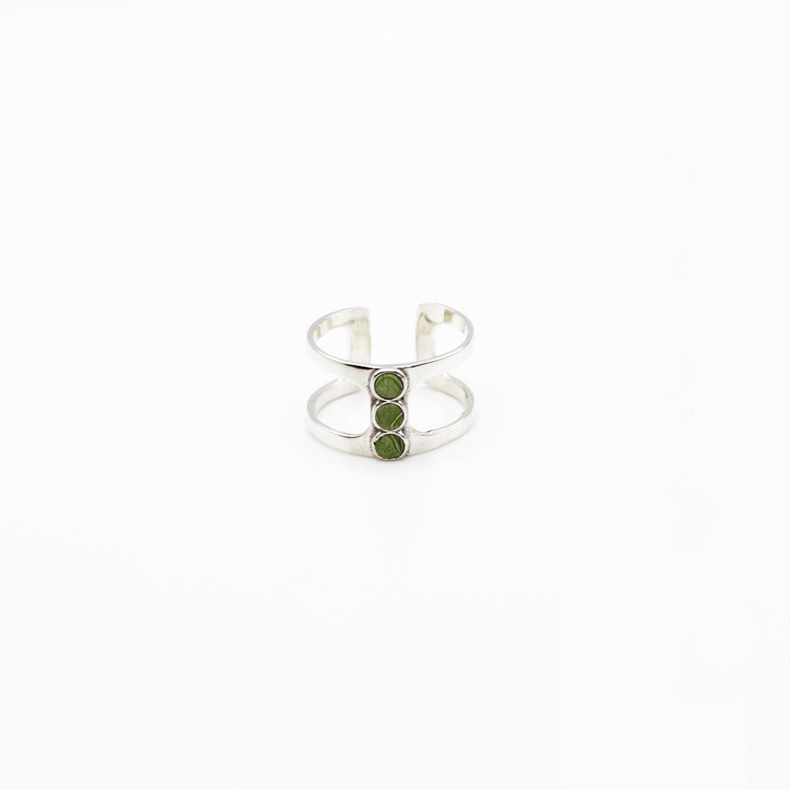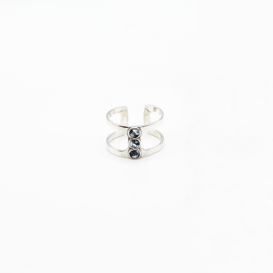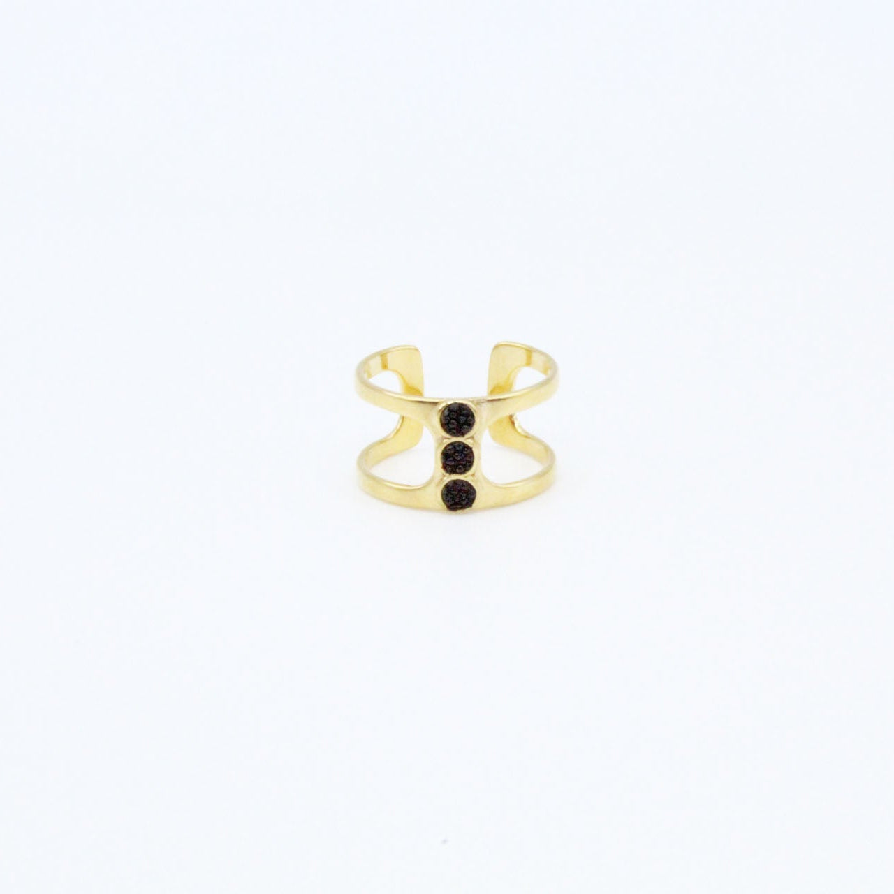 The Toogoodoo Ring boasts a distinct elegance with its three centered bezels embellished with eye-catching fish leather or fish eyes, adding a touch of personal style to your ensemble. This Ring is the perfect match for the Toogoodoo Cuff Bracelet.