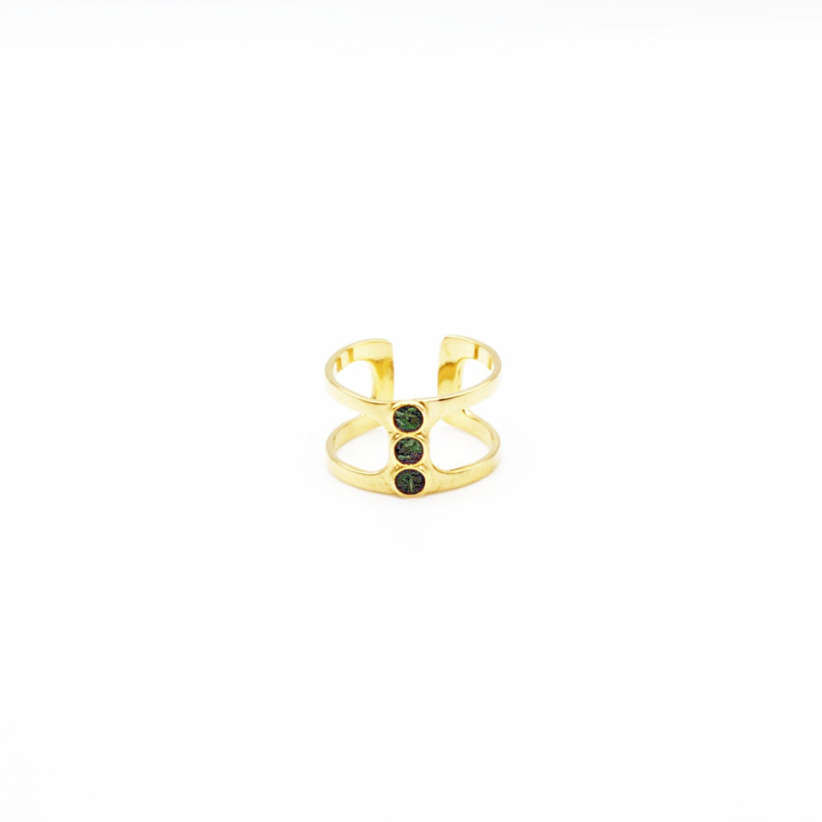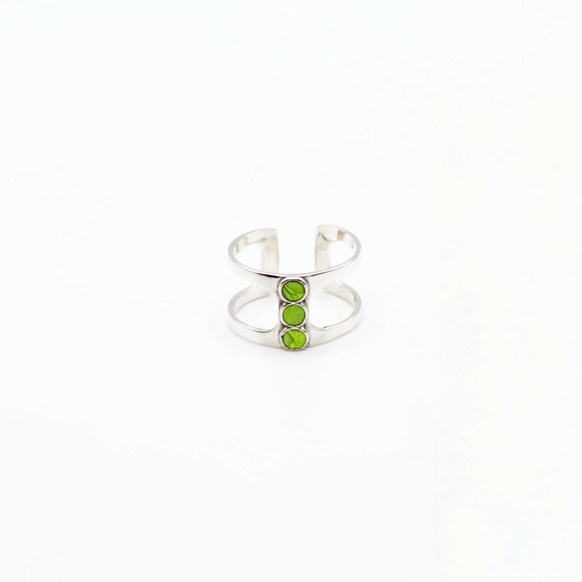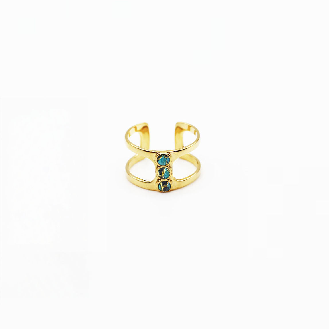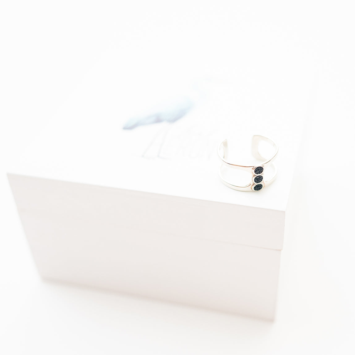 The Toogoodoo Ring boasts a distinct elegance with its three centered bezels embellished with eye-catching fish leather or fish eyes, adding a touch of personal style to your ensemble. This Ring is the perfect match for the Toogoodoo Cuff Bracelet.