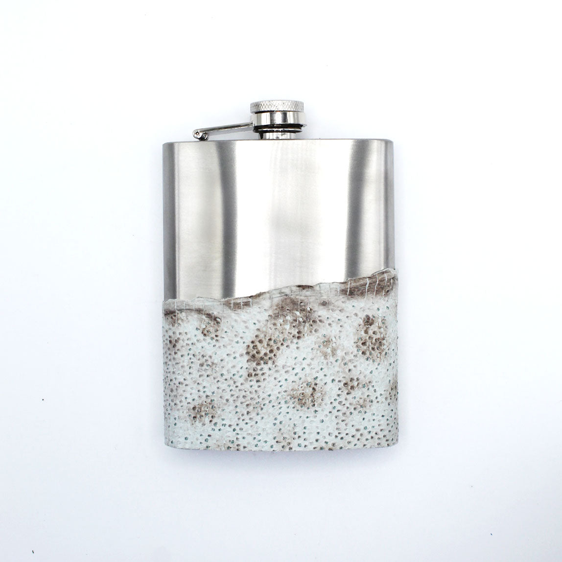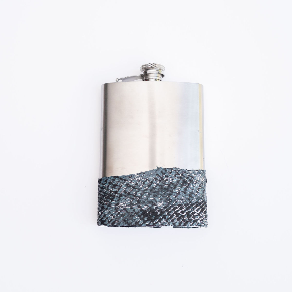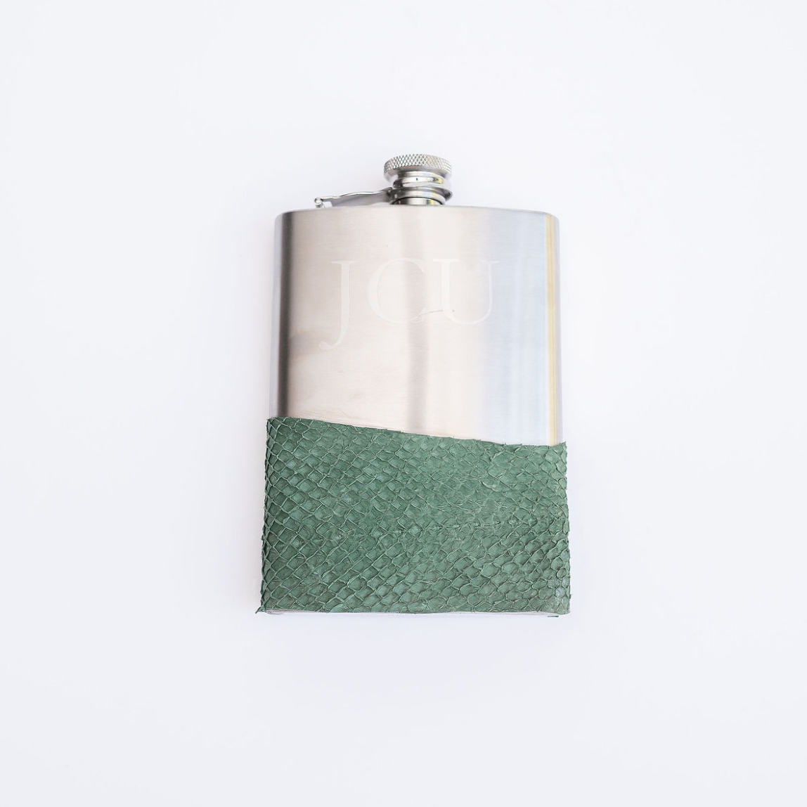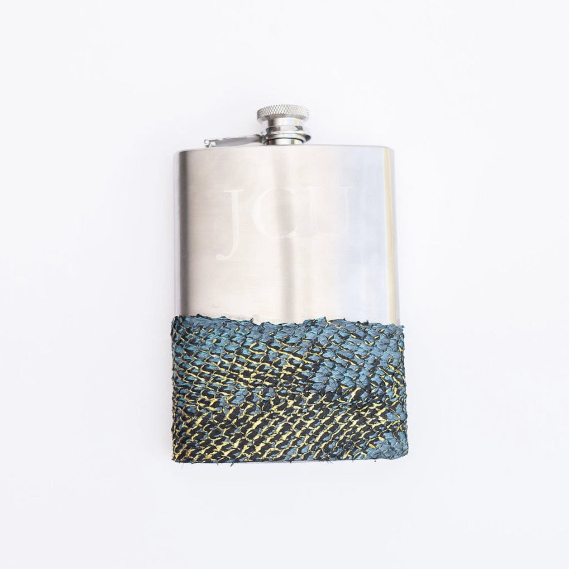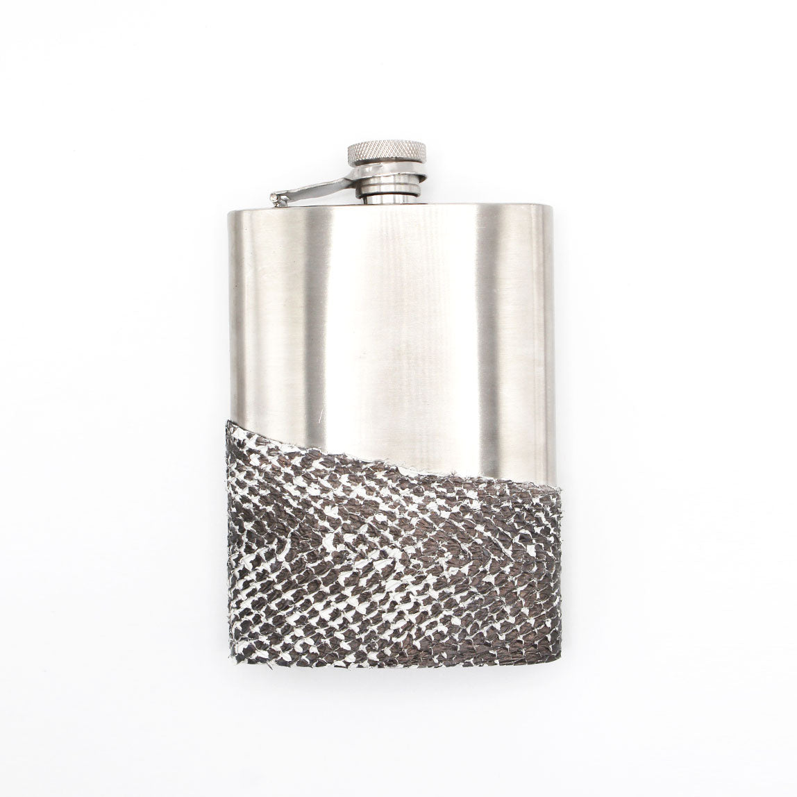 The Tuckasegee Flask is crafted from stainless steel and wrapped in fish leather for a touch of class, elevating your beverage experience. Perfect for groomsmen's gifts!