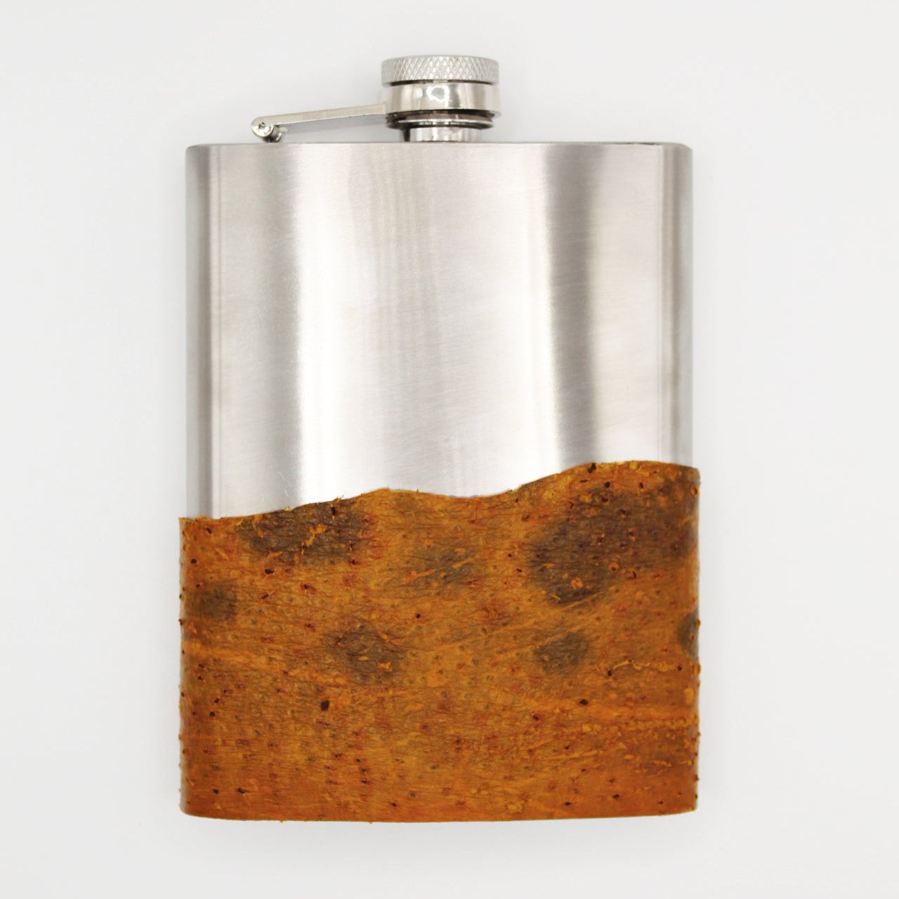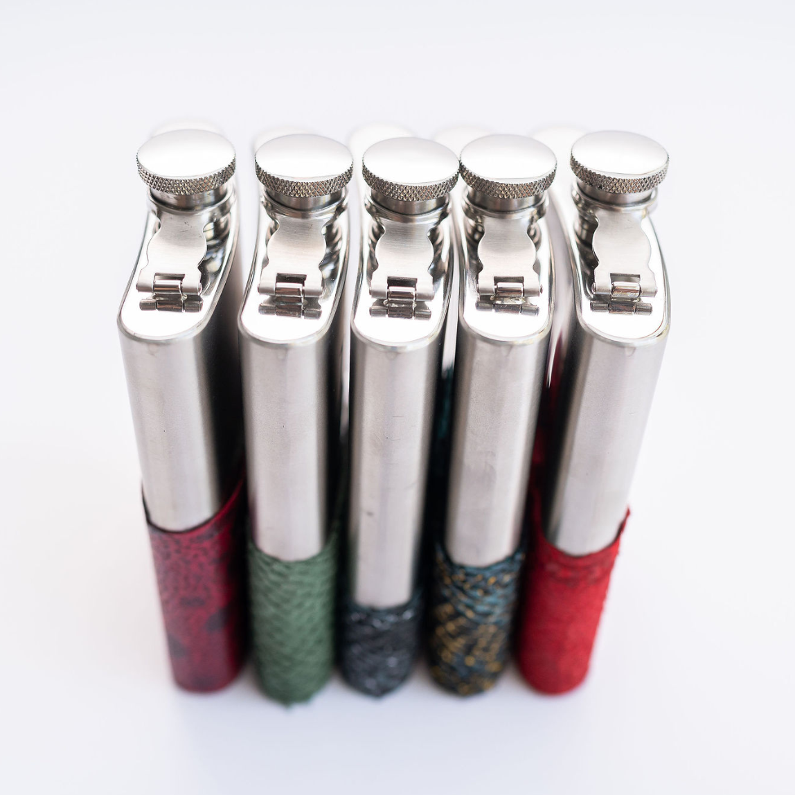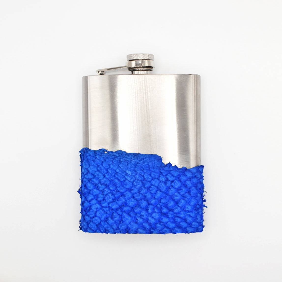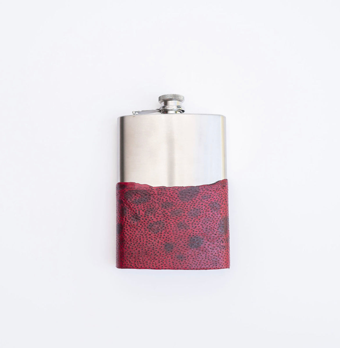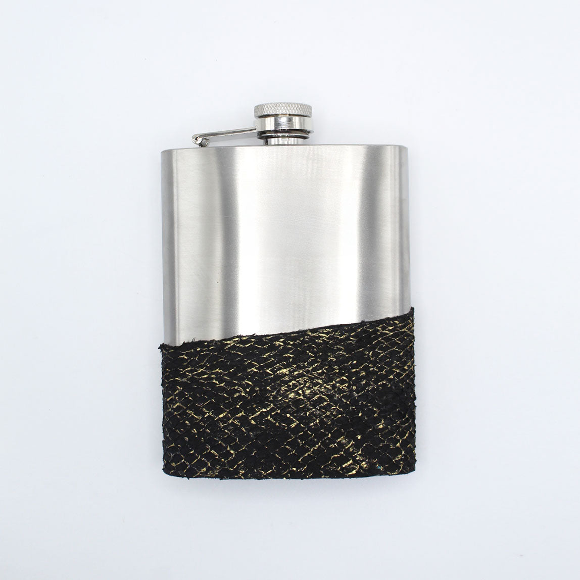 The Tuckasegee Flask is crafted from stainless steel and wrapped in fish leather for a touch of class, elevating your beverage experience. Perfect for groomsmen's gifts!