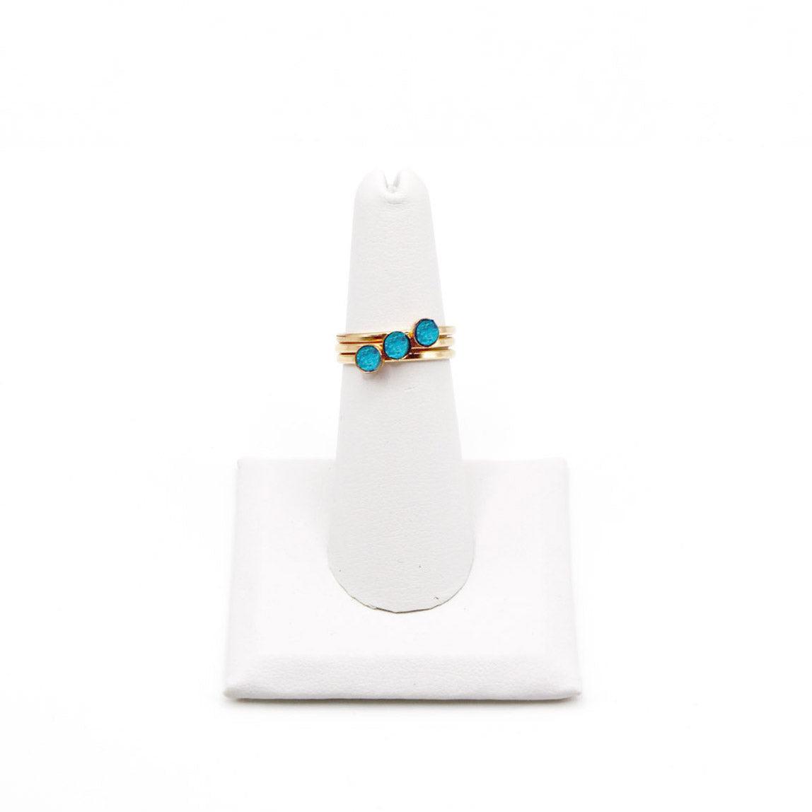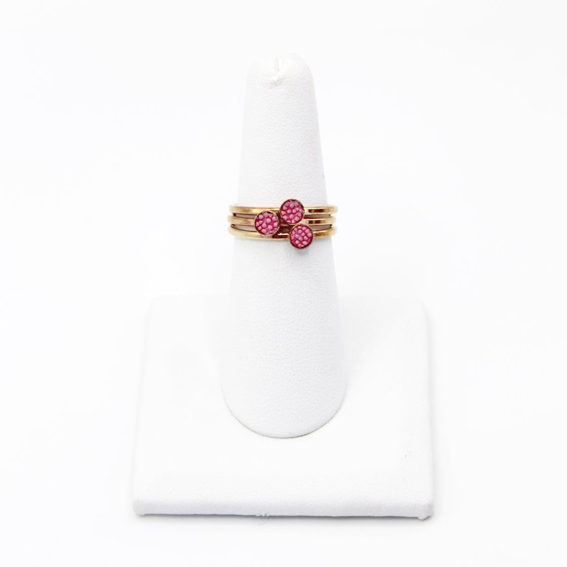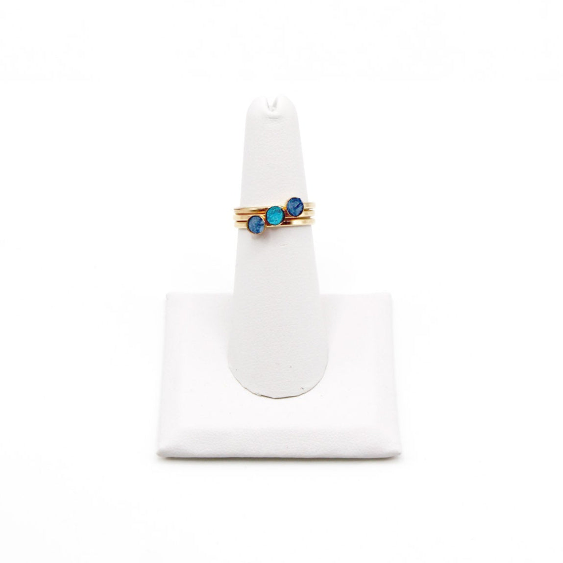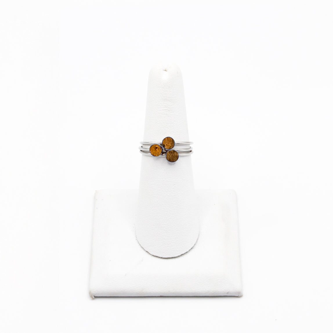 Introducing the Tyger Ring Set, a group of three dainty rings all with a single bezel featuring distinctive fish leather and/or fish eyes. Discover a touch of luxury and uniqueness in every piece.