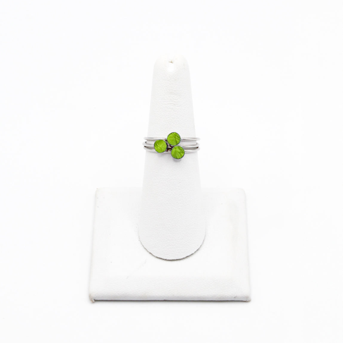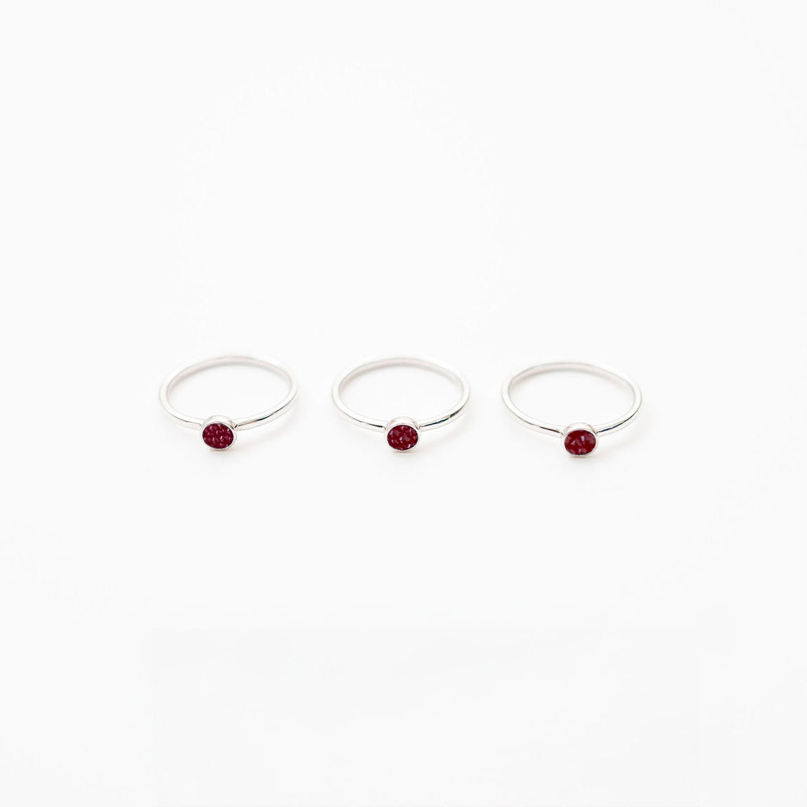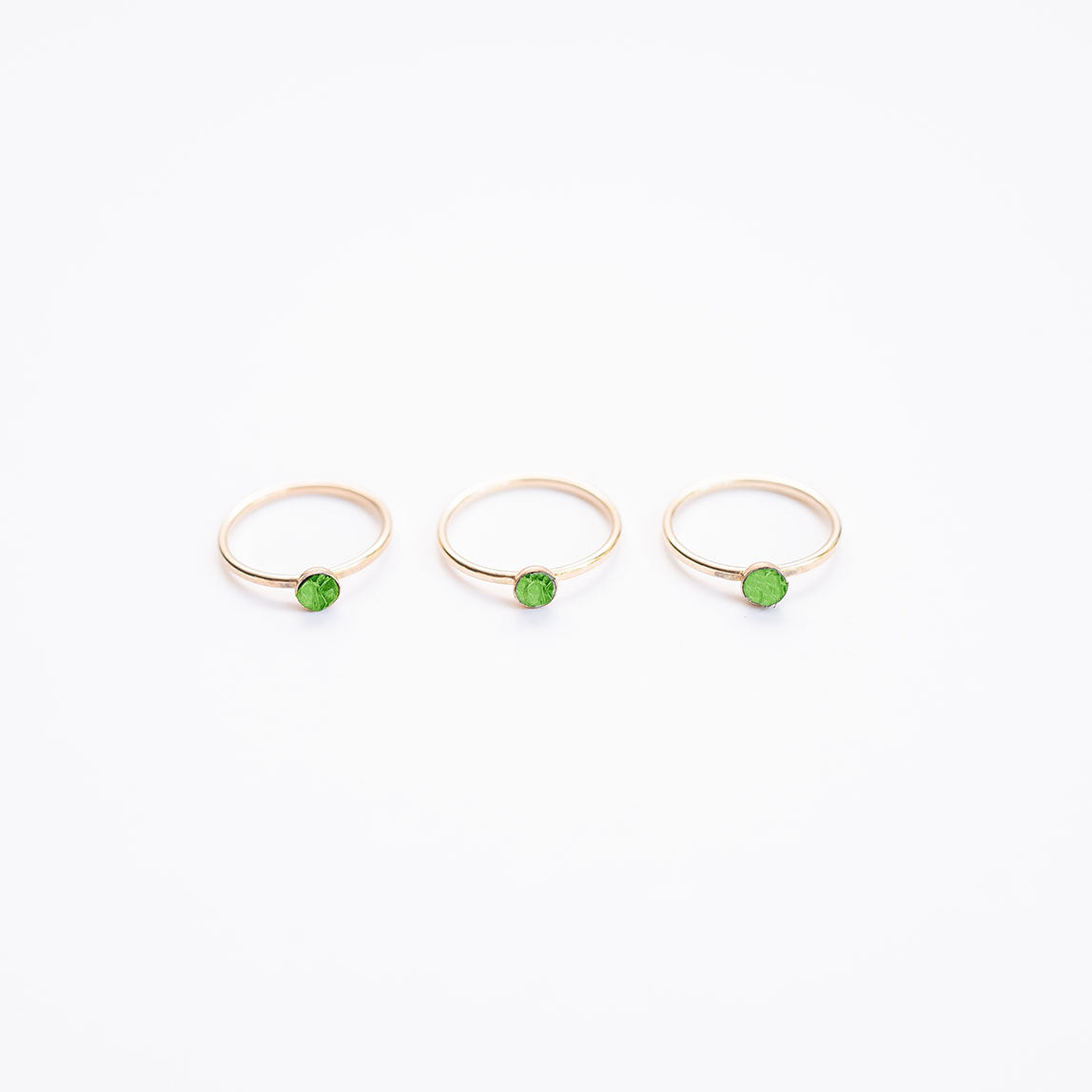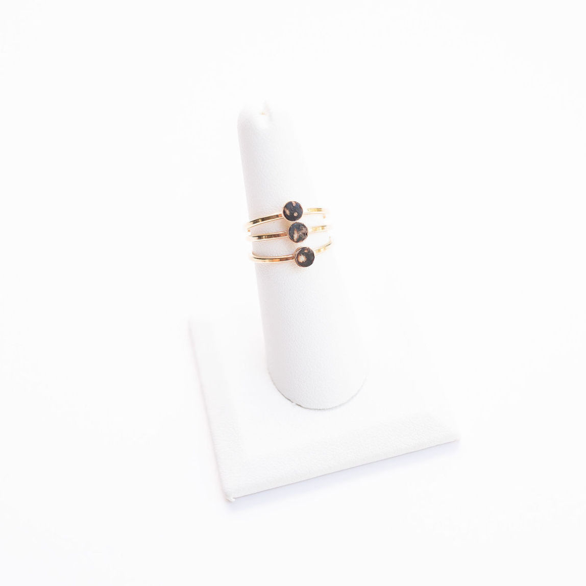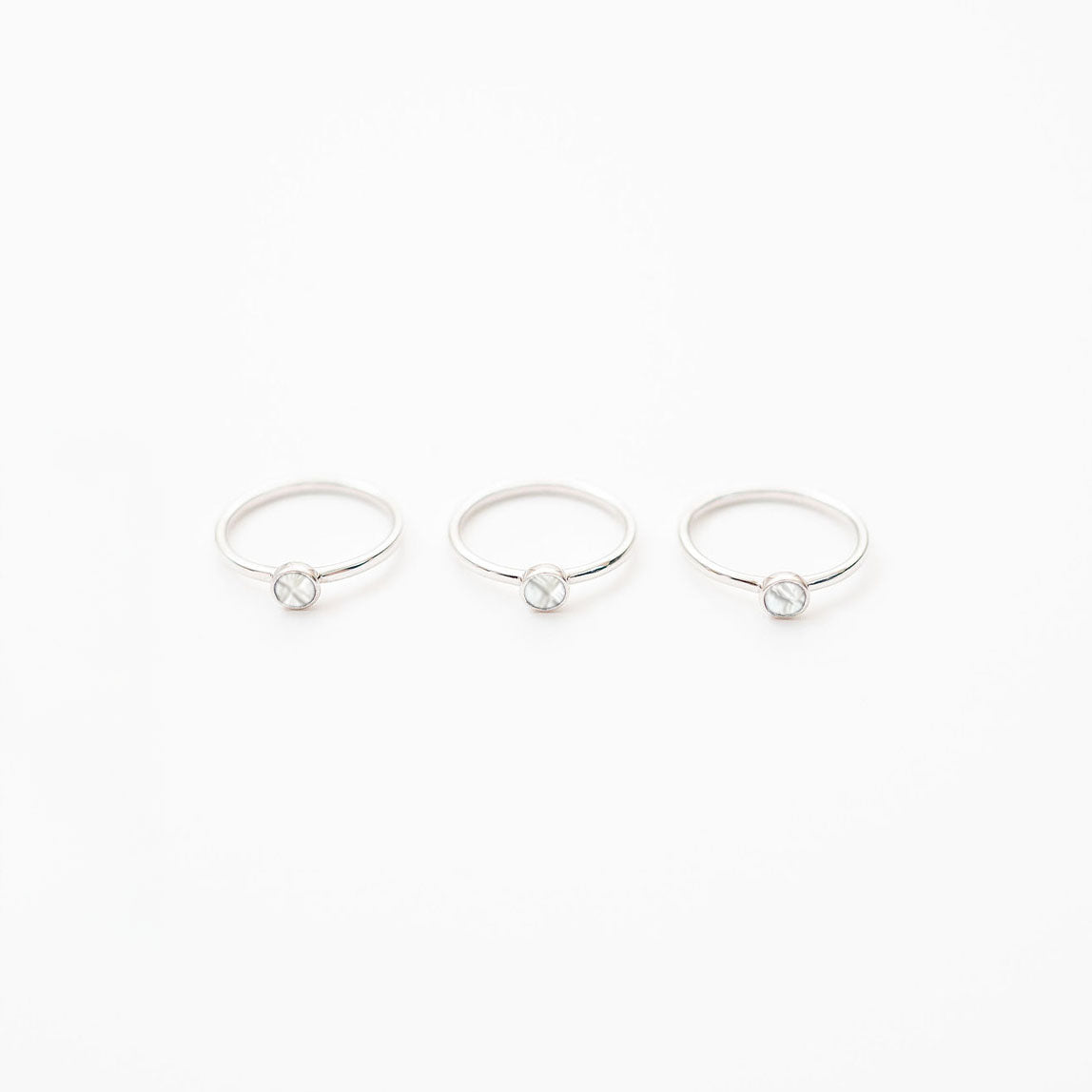 Introducing the Tyger Ring Set, a group of three dainty rings all with a single bezel featuring distinctive fish leather and/or fish eyes. Discover a touch of luxury and uniqueness in every piece.